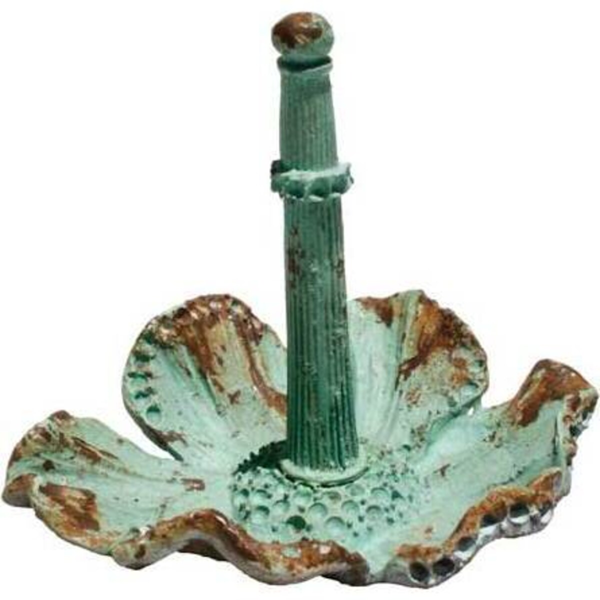 This inventive ring holder uses the central stalk to hold the rings securely and the petals at the base to contain rings and other trinkets.  The natural, rough texture of the teal coloured ring holder makes it ideal for any environment from the kitchen, conservatory, patio, or bedroom dresser - anywhere that requires quick and safe storage of rings.  By the washing up sink in the kitchen, precious rings can quickly be removed and placed on the holder to prevent them being lost during washing and drying.  The base is large enough to form a steady structure that is easily positioned without the risk of toppling over.  The design has an air of elegance and yesteryear that will be popular with people who have an eye for the traditional.  Perfect as a gift or ornament with a function aspect, this ring holder is beautiful in its simplicity.