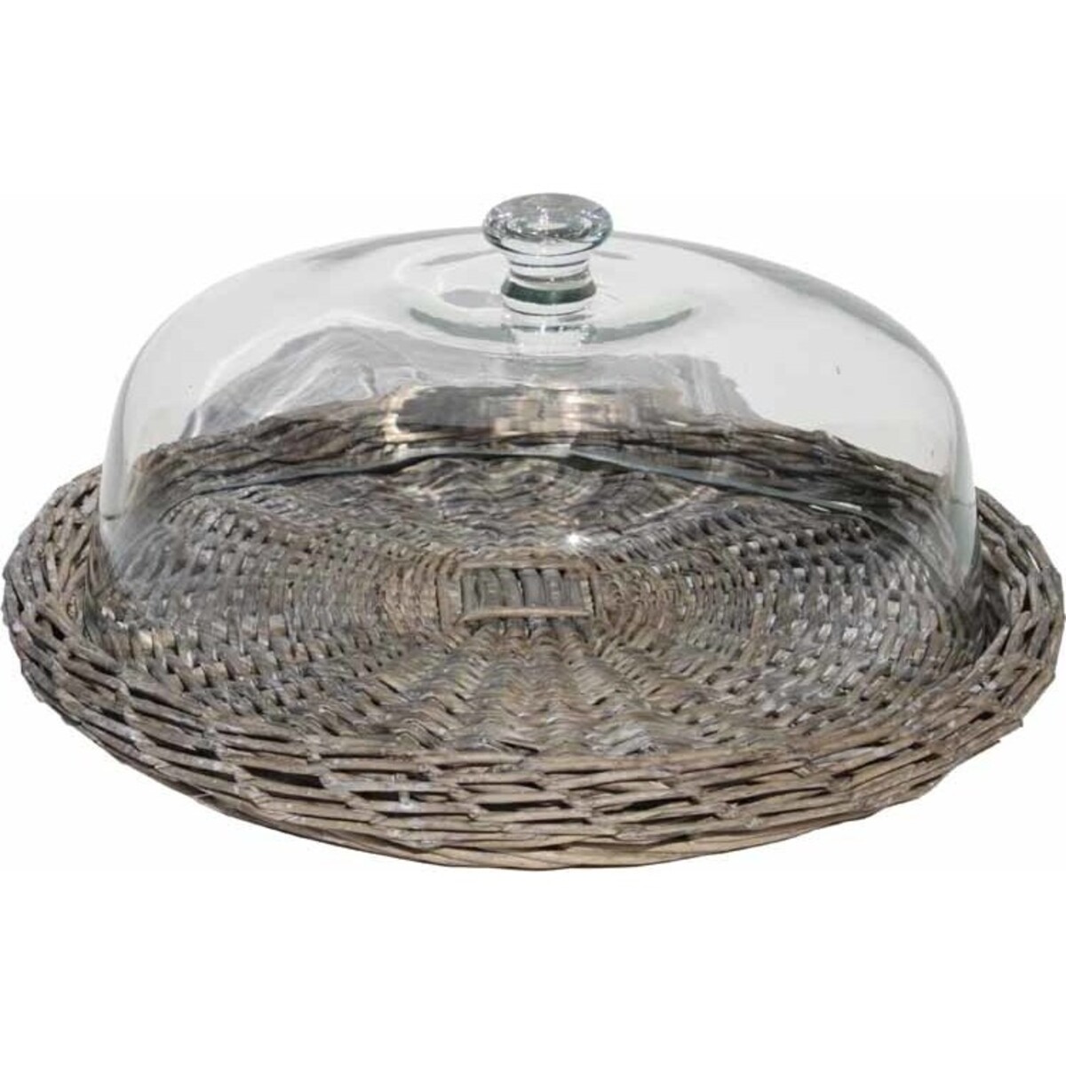 Eating food outdoors can be a wonderful event. But it usually calls for a new set of rules as well as china. It is generally pretty risky (for the dishes) to take a set of glass table wares outdoors where they will be exposed to the elements. What is more, the theme of the settings could be all wrong for a picnic. That is where this glass covered Romaine tray comes in. A glass dome protects a large wicker tray that is around the size of a cake. The weave of the basket looks natural outdoors while the glass dome protects the baked goods inside. You could also use it for starting seedlings, though it would probably mess up the sturdy traditional weave of the basket tray.
