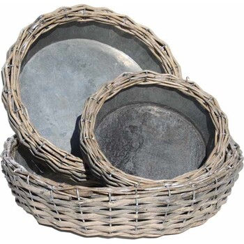 After you are done baking, scones would do splendidly inside a circular Romaine tray, especially when placed over a patterned cloth napkin. Trays are traditionally used for serving. And there is no shortage of fun items to serve up on a square Romaine tray. The Romaine basket line can be characterized by its appearance that is half basket and half metal bucket. They come it a set of three small, medium and large sized baskets. Plant a succulent in one or just use it to carry liquids. There are tons of basket trays, and a lot of metal buckets, but the Romaine baskets are the only hybrid line we have ever come across.