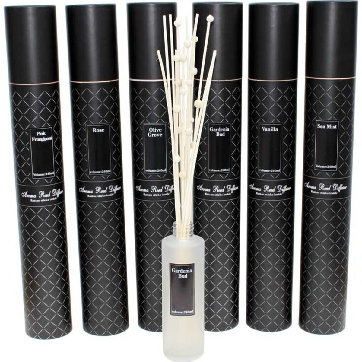 The black royale room diffusers come with a choice five different scents, Pink Frangipani, Vanilla, Gardenia Bed, Olive Grove, Rose, and Sea Mist. Each flavor in the set comes packaged in an elegant black tube with white edging. To use a room diffuser, simply place them into the bottled fragrance of your choice. It will carry a scent of gardenias or olives or whatever it is, out into the room for hours. There are some places in the home and business that need a little brightening up, such as a public washroom or water closet. They could also be used in place of scented candles on romantic evenings, assuming both parties enjoy the smell of roses. It was with places such as these in mind that the room diffusor was conceived and invented.