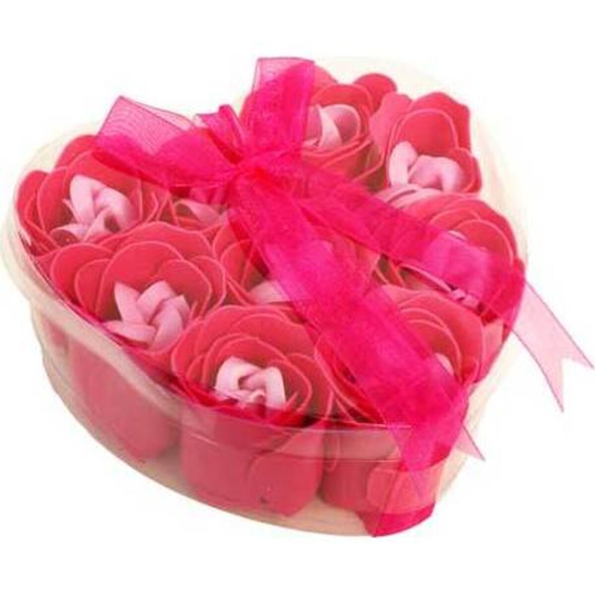 Set in a plastic heart - shaped container are nine dark pink rose soaps, each comprised of carefully formed and detailed petals. A matching dark pink ribbon is wrapped around each container. Every time you wash your hands, simply pluck a petal for a lather - filled hand - washing experience. Considering their exquisite beauty, they would make a great addition to your home, but would also make a lovely gift for those in your life. They're as wonderful to display in the home as they are to use.