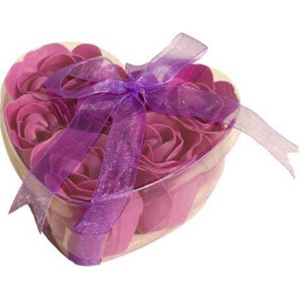 Each clear heart - shaped plastic container includes six purple rose soaps, each of which has carefully formed petals to use for hand - washing. Just one petal will provide enough wonderful lather for each wash. A dark purple ribbon is tied in a bow over the box to ensure a beautiful gift presentation whether it's to yourself or a loved one. While you can use them on a daily basis, make sure to always have enough on hand for when guests come over. It will be quite a surprise.