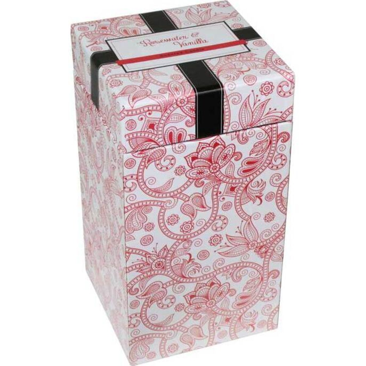 Give every one of your senses a treat with the light sweetness of this rosewater and vanilla scented candle.
