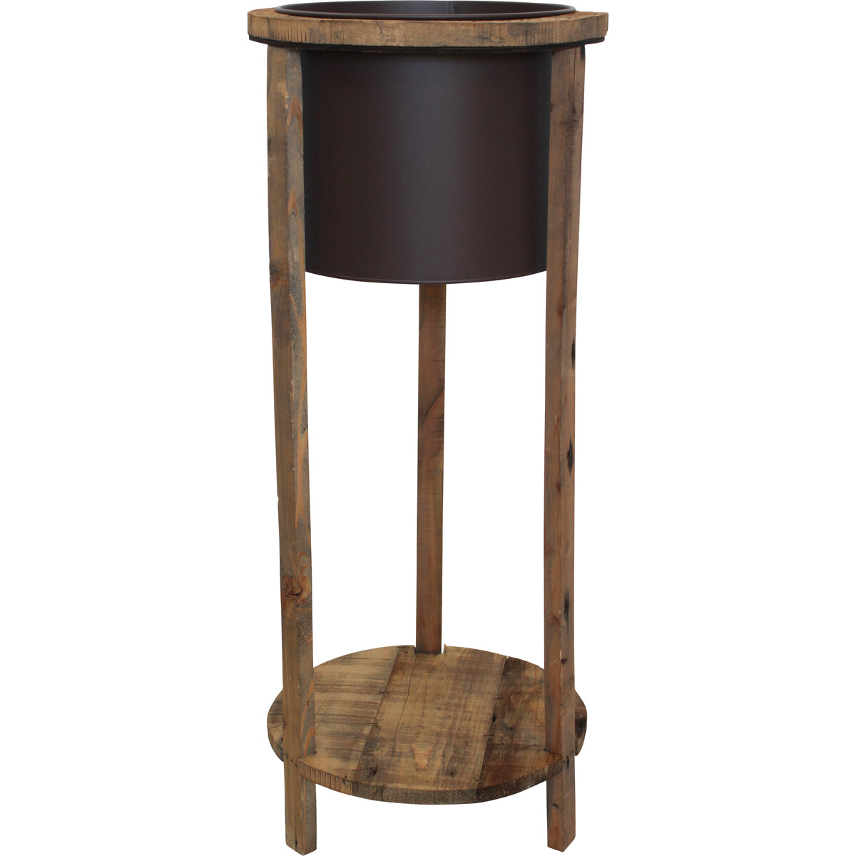 Crafted for sturdiness and style, this planter stands solid on four legs-the tub it holds is made of metal in which you could place a terracotta or plastic pot which holds your plant. The height of the planter is 82 cm with its round shape and wood made frame. The height gives you the advantage of displaying hanging creepers in them or plants that have large soft stems with broad leaves that can sway downwards for more fanfare. You can tick all those checkboxes when it comes to stability, style and modernism -its tub is easy to remove and clean and the stand comes interestingly with a lower deck which allows you to place another smaller plant to complete the look in amore cohesive kind of way. You could combine its usage with other planters in a similar style to give your plants that much needed style update.