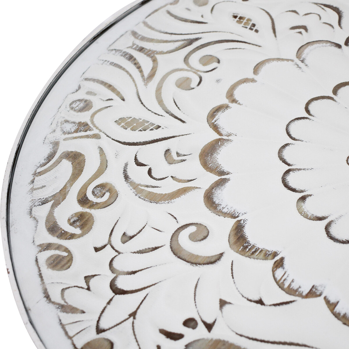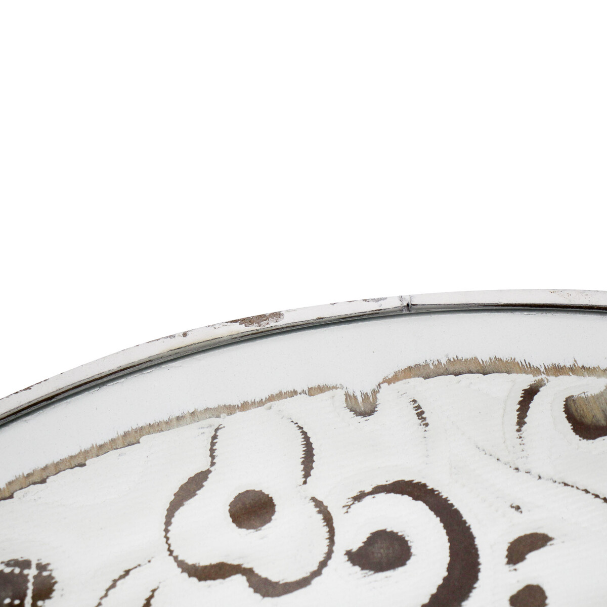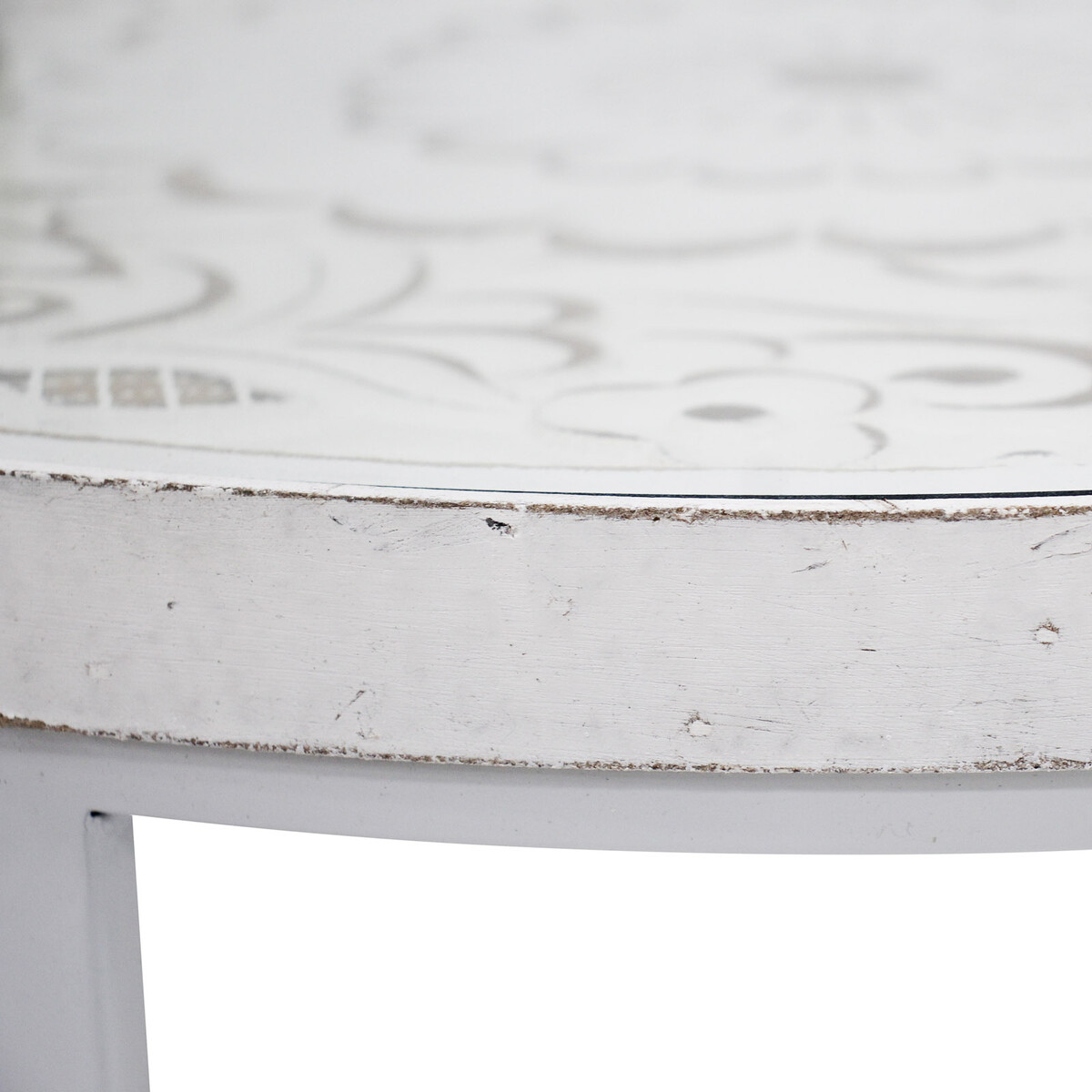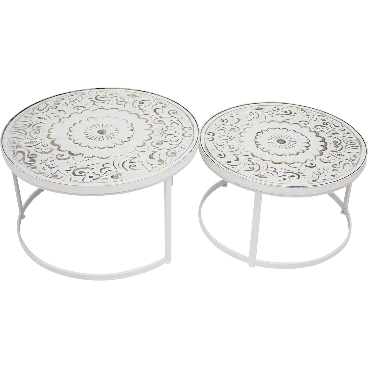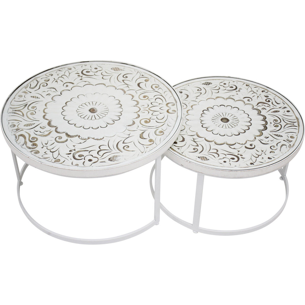 These round tables would look stunning in your home and would go brilliantly with interiors of all kinds, depending on how you wish to utilise these tables. This gorgeous tabletop has an ornate pattern that has been created on resin-covered in glass and the frame is made from metal which makes it sturdy and rigid. This set has two tables in varying sizes. The round tables are sized 70x70x40cm/ S:60x60x36cm. The top of the table is covered in glass where you can keep your books, table lamps and more. Made of high-quality metal and glass, these tables are very durable. These tables make for an amazing option if you want to extend your seating space. The white colour wash would look lovely in any space and the beautiful and charming designs on top would make your space appear aesthetically pleasing.
