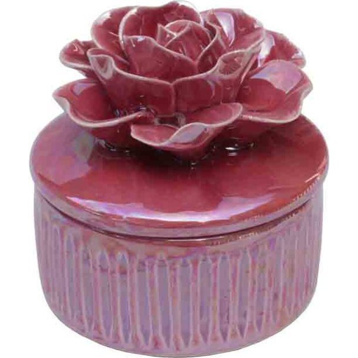 The lid is topped with a wonderful and truly impressive pink flower in full bloom. The petals are so beautifully curved that it looks just like the real flower, or even better in the eyes of some. To add to the richness and vibrancy of the flower, it is done with a wonderful glossy finish that brings out the elegance and brilliance of the whole item.