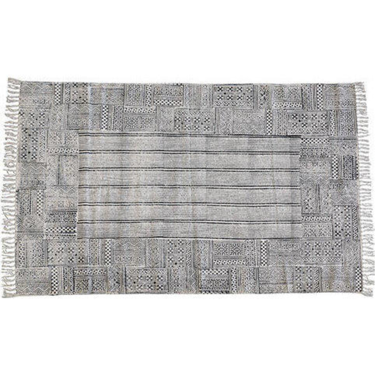 When it comes to simple home décor articles trust Lavida to curate the best for you as is evident I the range of rugs available . Made from 100% organic cotton, this handwoven rug is all you need to liven up a space with a certain amount of elegance. The soft grey colour, the design that intensifies in its intricacy along the border and the lovely finish along its edges makes it a piece you would love to spread when the occasion is special. The colour is the kind that will happily marry any other in your décor and not challenge it. The lovely sift grey on grey tonality is what makes it rather special. The rough and rugged handwork has a certain traditional feel to it that will add a touch of class and ageless kind of beauty to your spaces. Use rugs like these and add a certain element of warmth and coziness as they cover spaces and bring the décor to a high point of coordinated and aligned kind of look. Apart from its looks, the very feel of its organic cotton weave is such a pleasure.
