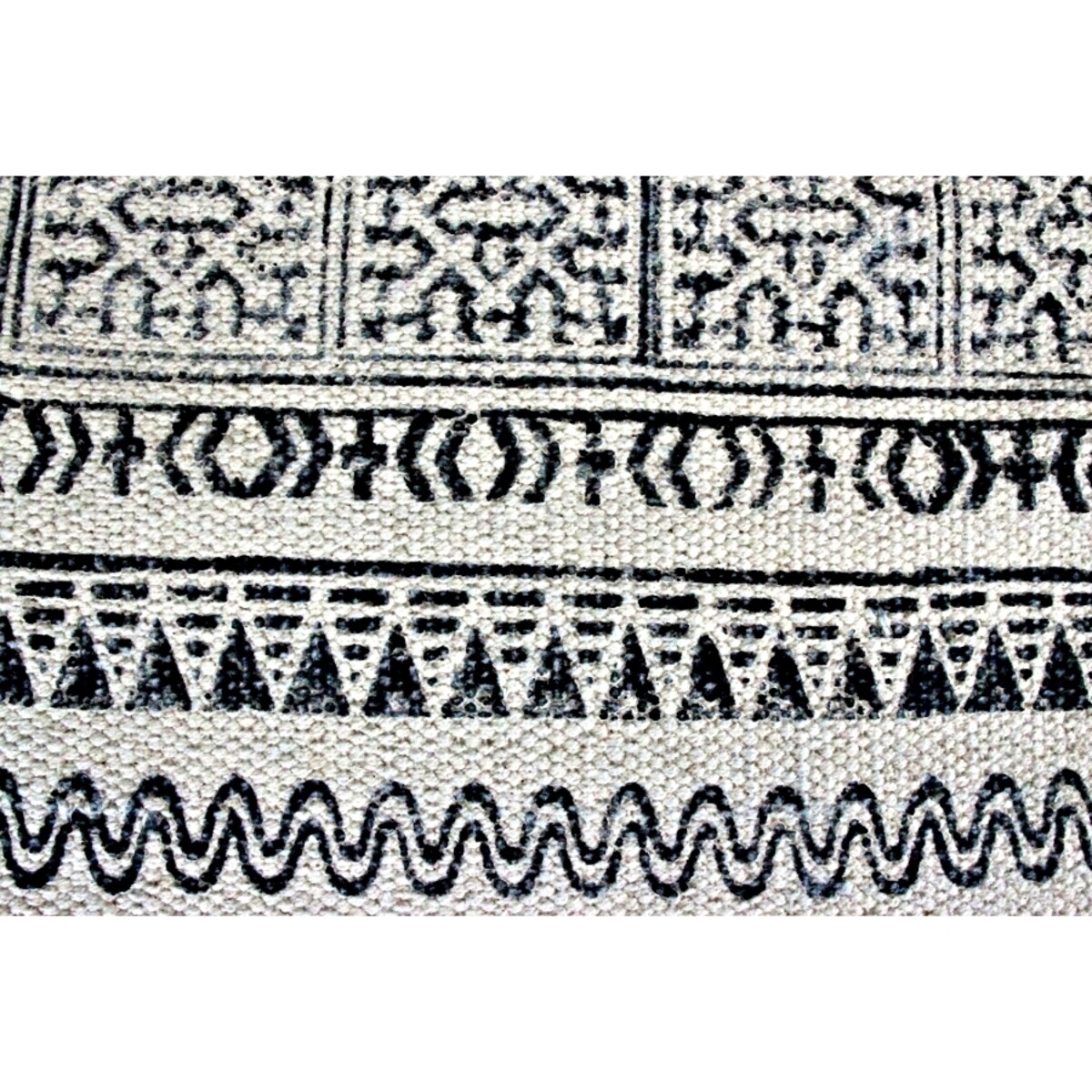 Place tugs on floors if you want to build in more charm and elegance in your spaces and when it comes to cotton rugs you could not gave got a better option than this piece that is 180 cm in length and 120 in width. The handmade rug comes with a traditional intricately woven pattern that runs across like a band and the rest of the surface hosts a linear design that converges well with the overall look to perfection. The ends are tasseled for a neat finish. The weight of the rug makes it the kind that could be rolled up easily and laced in any area where it could be needed. The lightweight nature of this piece too is its highlight. Great for summers when you would rather have light airy and more summer conducive materials on the floor. The feel of the cotton is soft under the feet. The kind of weave that will hold string despite much footfall. You would simply love the manner in which the soft gray does not challenge the colour palette in your décor instead allows the other colours to look even prettier. The tonality of grey on grays looks simply gorgeous and the pattern despite its under usage of colour looks outstanding.