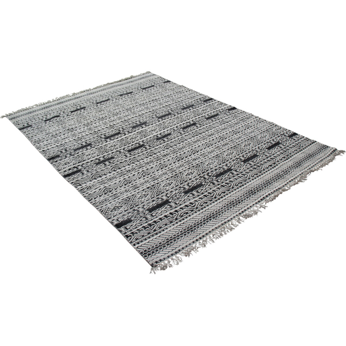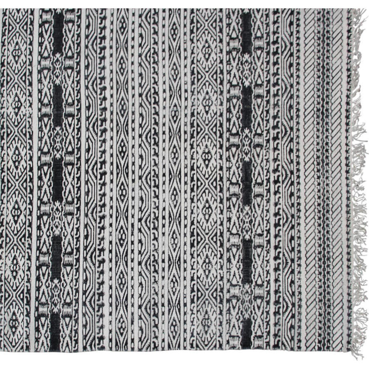 Add that rattan sofa or the old antique rocking chair to the d?©cor - place a few white coloured cushions or some bright hued one sis solid colours and you are sure to invoke a truly modern look for your home. Add that Moroccan lamp of few twinkling votives and the look will convert to a really eastern look and if you simply top it with more monochrome d?©cor additions you could bring out the beauty of the colour palette like ivory and black more impactfully. The 300 cm long rug with a width of 200 cm will be a perfect pick to dress up the floor ins fairly large seating area. The tough cotton weave and the fringed ends have been created with great finesse. The weave shows great expertise. You could choose from two other sizes available in the same pattern and see the suitability as per your room size. Or - simply take two similar one to add to the adjoining dining space.