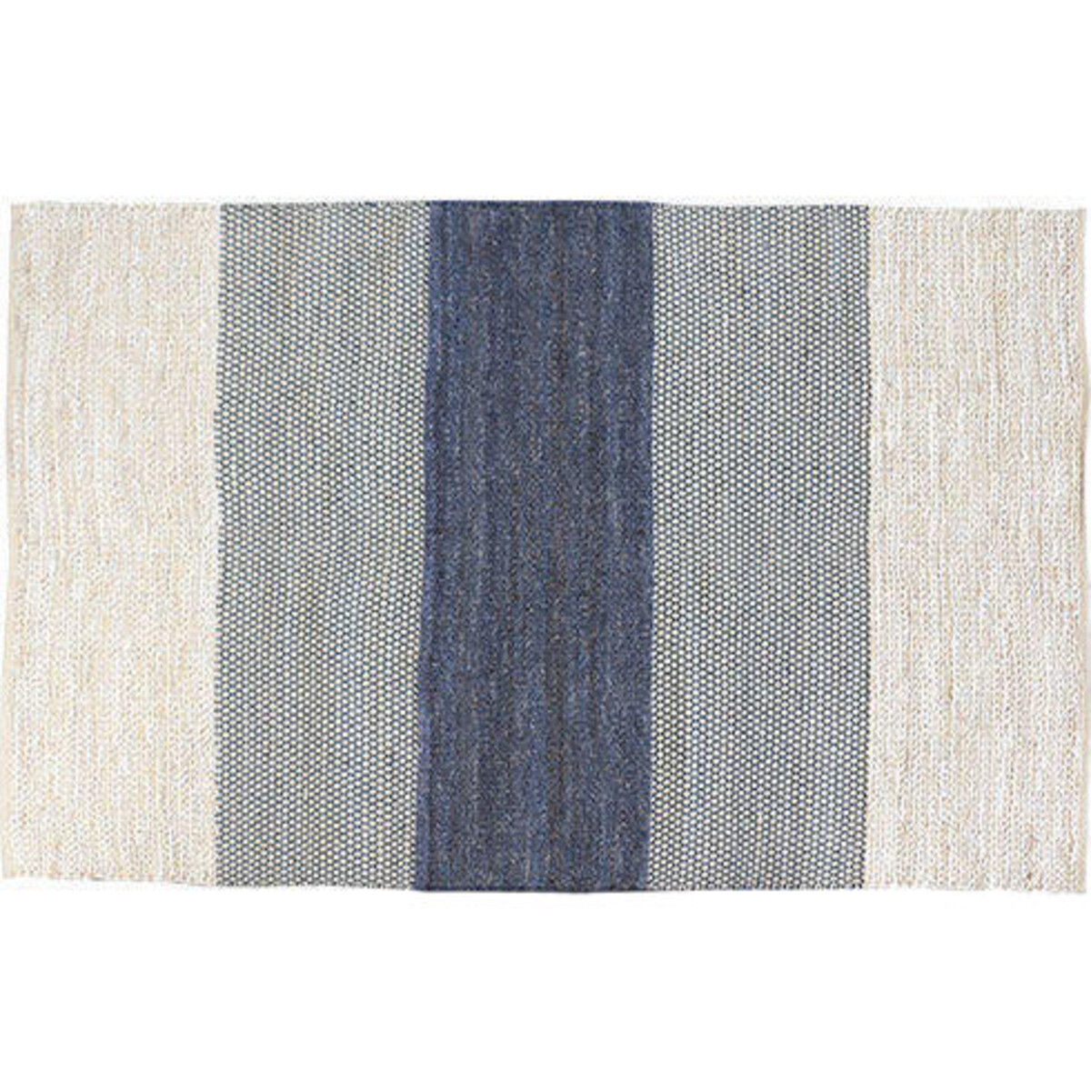 Rugs are great to lend your home and other spaces a colour impact and that is apparent from this striped rug from Lavida which shall infuse the space with its marine coloured hues in blues and whites. Made from organic fibre the rug with its simple weave is tough in its resilience when it comes to its durability but will feel soft and pliable and rather organic when placed underneath. Add it to the living room and infuse it with a beautiful colour appeal or place it under the dining table and lend your dining area and the table the grounding of colourful stripes. Rugs made of jute have the tendency to take to the floor and soften as days go by and will unfurl and settle with more ease as it is used more intensely and the yarn loosens and softens gradually. Enjoy the feel of this 240 cm long and 170 cm wide rug underneath and see how its beachy and easy - going style will make spaces liven up. Does not shed much and can be vacuumed like any other rug.