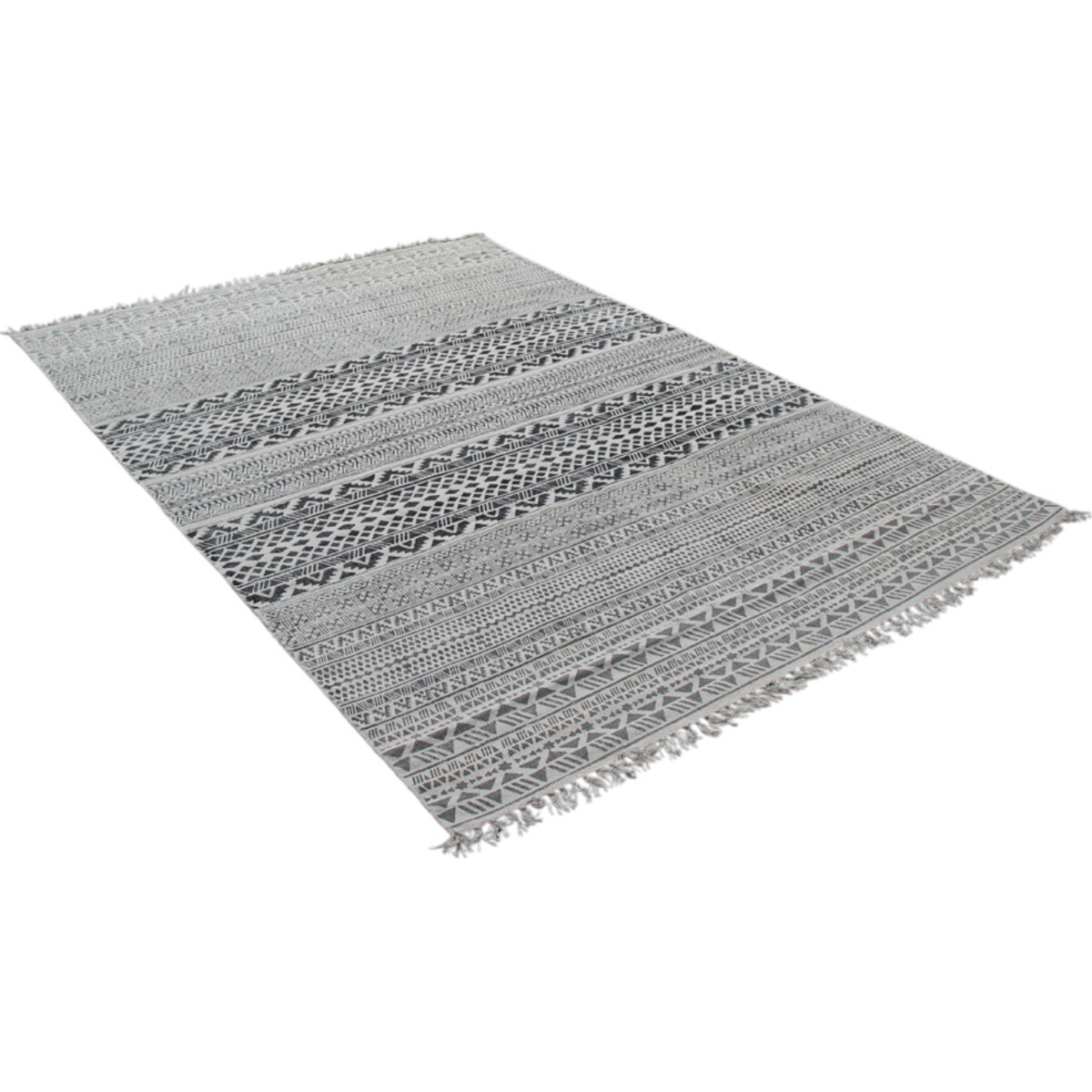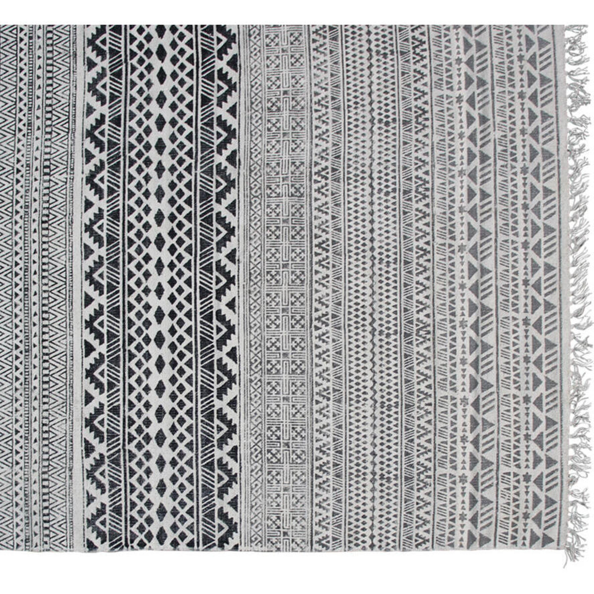 Whether you place bright coloured floor cushions or bean bags in jewel colours - there is no doubting the fact that with a design as intricate as this, one should focus on keeping the rest of the palette as bright and single colour as possible. It will in fact look its best when teamed with white and black or brilliant oranges and reds. The pattern has been woven with great finesses and the cotton feels soft and inviting. A wonderful summer time rug that is tough and resilient under your feet and can withstand much usage without looking worn out or shabby. Especially used for rooms that are wanting to build in a kore traditional and ethnic feel in the setting. This fringed rug is 300 cm in length and 200 cm in width and looks decidedly elegant and vibrant because of its eclectic colour combination and charming pattern.