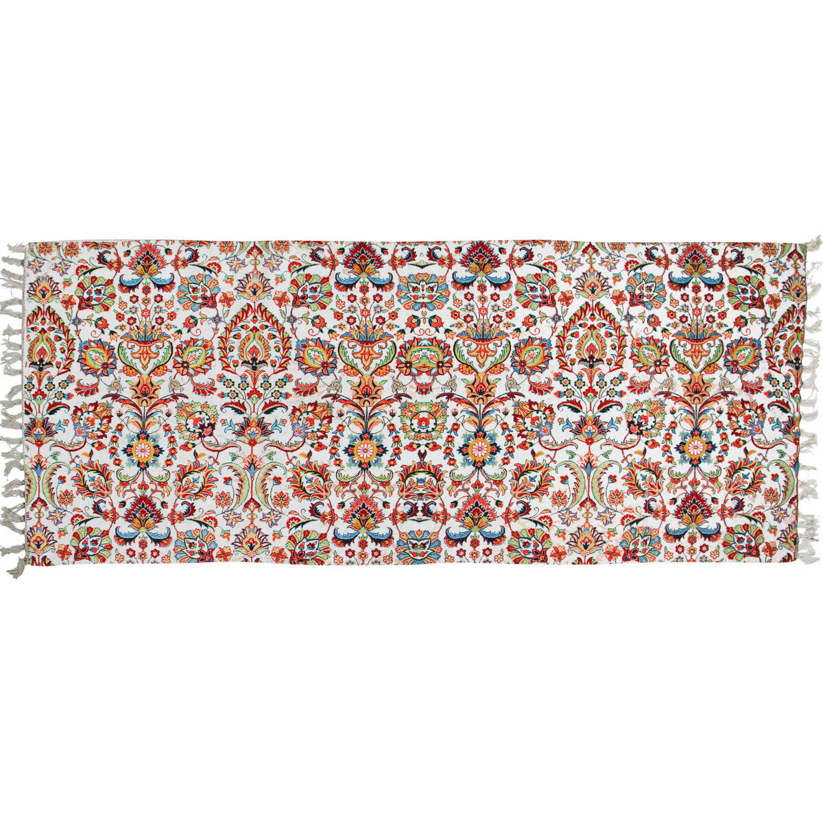 The intricate Boho chic patter of this chenille made runner helps it fit into any modern or traditional space with equal ease. Crafted from a combination of cotton and polyester fibre makes it durable and also adds a touch of organic feel underfoot. The pattern is rich and intricate helping bring the same ornate touches in your space. will look especially great running the length of the bedside or along the width of the bed. You could place it right in front of the side board where it could from a striking contrast with the wood. Runners, like carpets and rugs help tie up the look of the décor blending colours and diverse patterns scattered across the space. The intricate design of the print of this piece is best suited for spaces that need some décor richness to lift its look. Fringed ends give it a neat finish and its length at 150 cm and width at 50 cm, makes it suitable in any regular sized room.