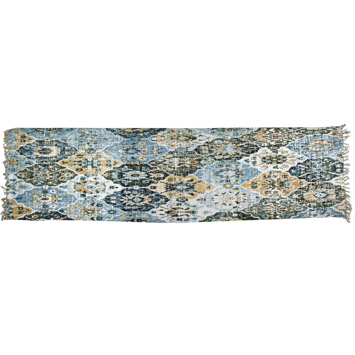 Here's one of those quirky-cool rugs that has a knack for sparking conversation. The Runner Chenille/Wash Mix in 80 x 300cm feels like a true original, with all the charm and character you’d expect from a cottage industry piece. If you’re curating for a retail audience that loves things with a story - this is it. The mix: 80 percent polyester, 20 percent cotton. A good blend for the right amount of softness, grip, and structure. It’s machine washable too, which always wins practical points for busy homes or workspaces. Those perfectly imperfect details? That’s intentional - irregularities in printing, colour, and size are part of its charm. Plenty of “imperfections” here but it feels more lived-in and genuine than mass-manufactured rugs. We know this runner works anywhere - hallways, under a slim dining table, even at the end of a bed. Blue-gold-white patterning makes it easy to match with everything from warm industrial spaces to breezy beach houses or layered boho looks.