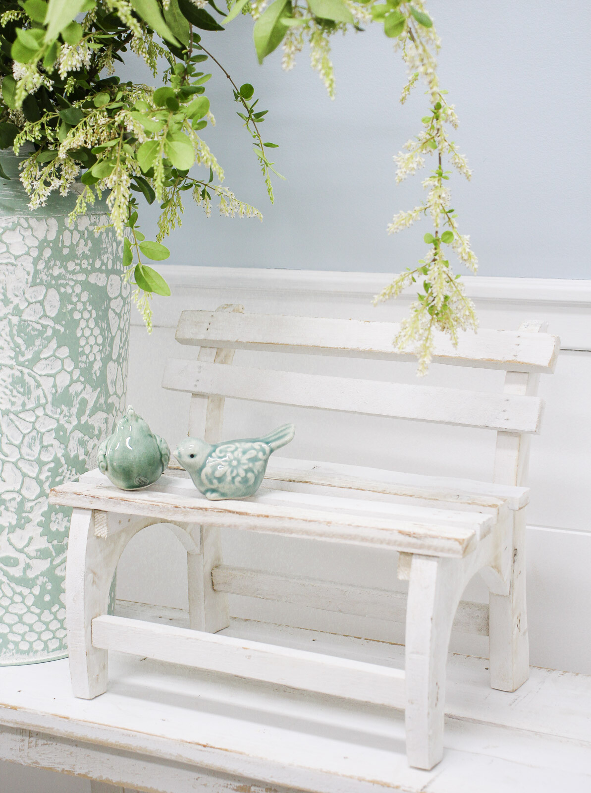 This piece comes in handy to bask in nature's freshness or entertain outdoor events. To make a grand statement, pair this piece with several in a row. This will allow for more effective usage. Rustic Mini Bench features a painted frame to guarantee longevity. Durable backrest and a beat-up rustic overall appearance. A stretcher is fixed to the bench for visual balance and to add rigidity to its lower area. The wooden frame is relatively sturdier and heavier much more than its counterparts. This product will not tumble over and ruin your plants when the wind picks up.