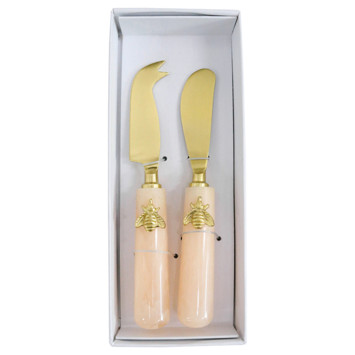 We are a bit obsessed with beautifully crafted homewares at the moment, and we think there is something quite captivating about our S/2 Entertaining Mix Marbleised set - maybe it’s the delicate blend of shiny gold metal and soft marbled resin. It’s a showstopper for the eye, especially with that gold bee detail sitting right at the handle centre. These pieces offer customers a chance to create an elevated table setting - perfect for those gifting customers too! Our sets work really well for picnics, grazing boards, cocktail parties, or even as a set to enjoy at home when you want to add a dash of fun. Each 18 x 2cm knife is handcrafted from metal and resin, so your customers will notice charming differences in each piece - that’s no fault of manufacture, it’s all just part of its beauty. We think this one is sure to become a favourite with any new kitchenware collection or giftware display.
