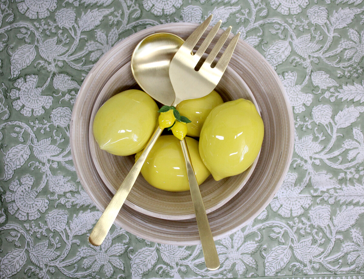 Our S/2 Lemon Salad Server set is exactly the sort of thing that always gets our team talking. You know when you find a piece that just feels like summer? Well, that's exactly what these gorgeous 29 x 7cm servers have going for them. Each one is handcrafted with an adorable little lemon accent, and because they're made by hand - no two are ever quite the same. Actually, we think that's part of what makes them so perfect for gifting or for a shop display - they just look really special and a bit different to everything else out there.
