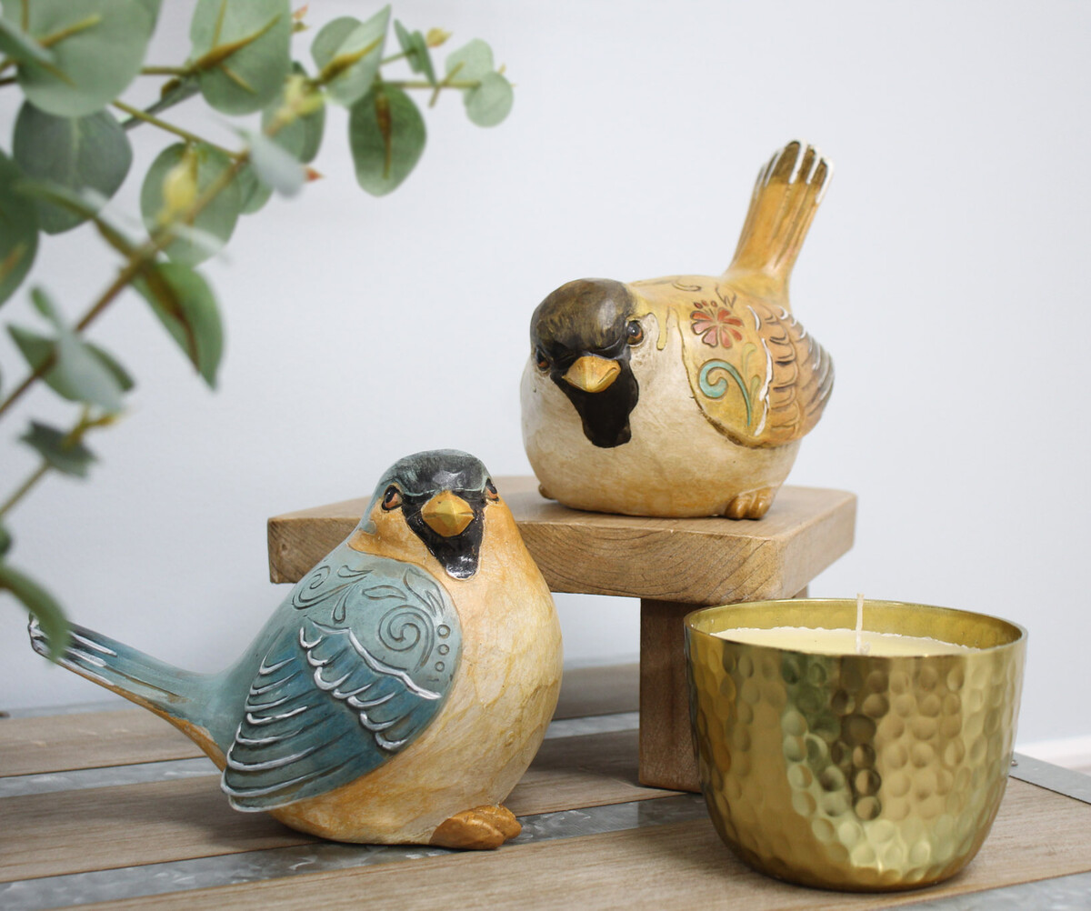 Hallmarking humans fascination with birds. S/2 Seasonal Birds is wholly scrupted with resin to mimic the ambience of bird's exquisiteness, elegance, beauty, royalty, and nobility. Featuring seasonal birds, this gorgeous ornamental piece speaks more than a thousand words to bring glamour and grandeur to one's home. S/2 Seasonal Birds has an eye-catching effects, it is painted in gold colour and tinted with striking colours. The birds are gorgeous and are finesse in a bird-themed decoration. Perfect for indoor use on mantelpiece and chest of drawers or making a bold statement on its own. Likewise, one can use it as lawn ornaments, porch decoration among others.