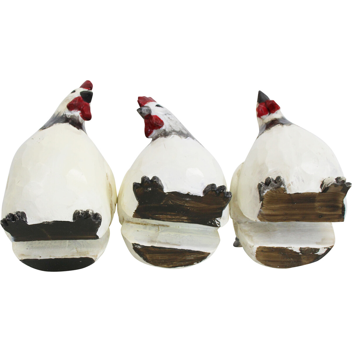 Our S/3 Chickens Rail Sitters are crafted with high-quality resin, these charming decorative accents are designed to bring a touch of rustic charm to any space. With their lifelike chicken appearance, they add a playful and whimsical vibe to any rail.