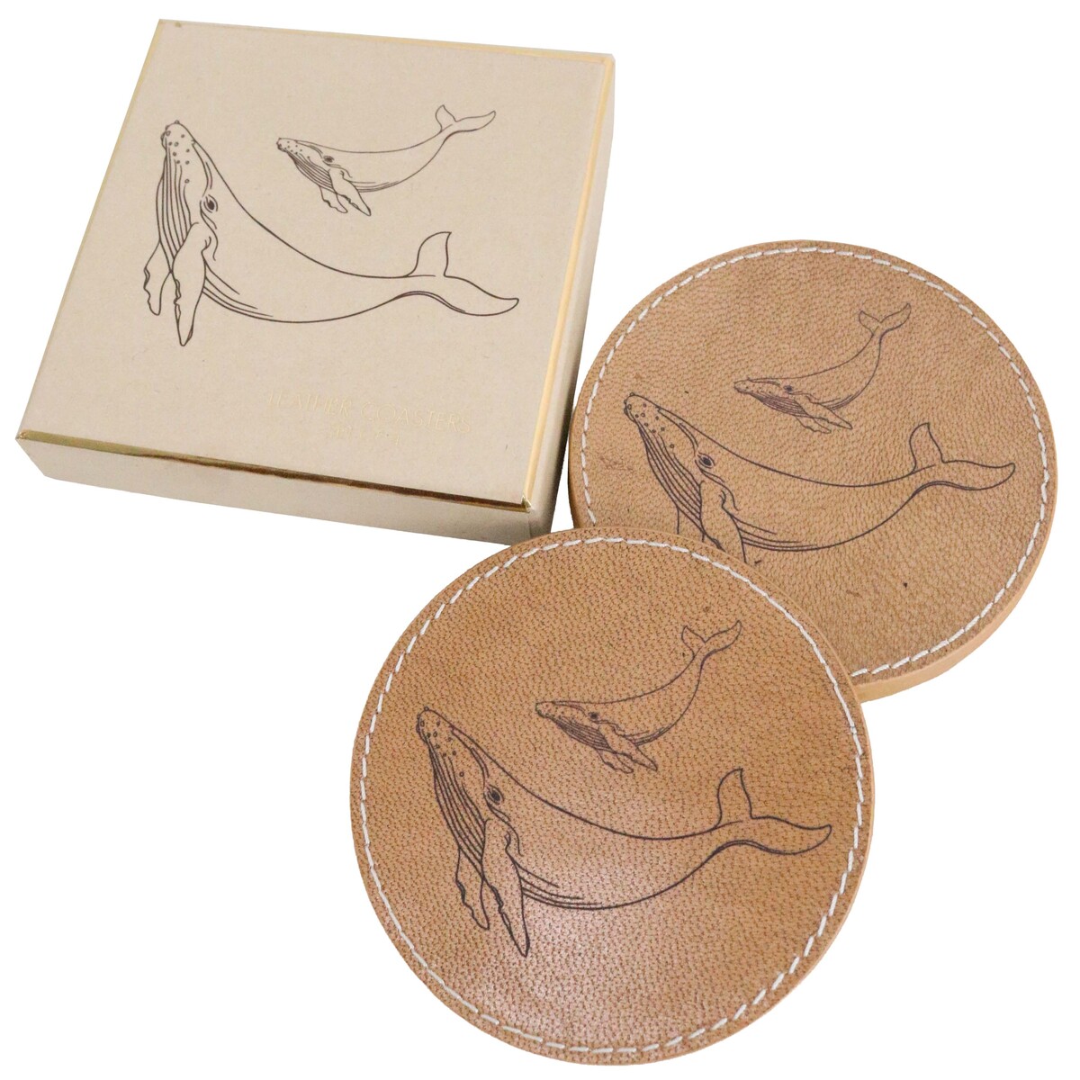 S/4 Leather Coasters Whale