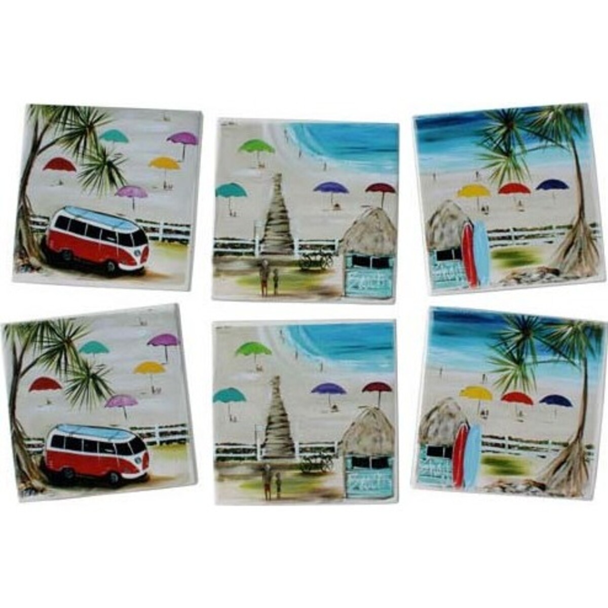 The S/6 Coasters Beach Scene is one breathtaking artwork that can replace any expensive contemporary painting. It is picturesque and it is simply beautiful. The way it depicts the beachside scenery is whimsical and yet elegant in a way. This wall art consists of six different pieces. When put together, they create a panoramic view of beachside scenery - an ingenious design by the Beach Art Specialist that made it. And because there are six pieces, you can arrange them in different styles: perfectly aligned, misaligned, or whacky. The use of pastel colours also helped achieve that beautiful contemporary look. The colours are fresh to the eyes. Also, the lack of any visible frame or borderline on each piece created that appealing 'bare canvas look'.