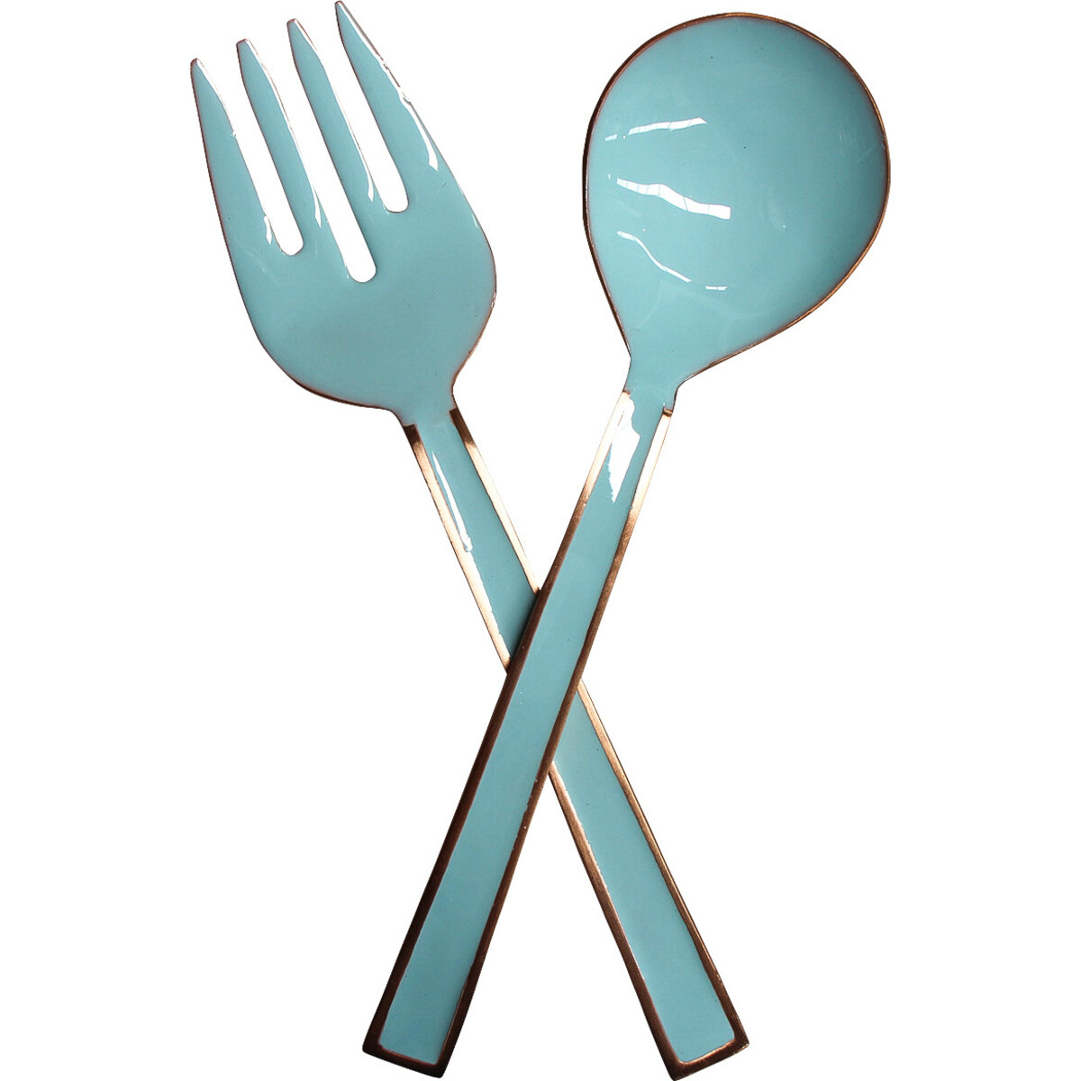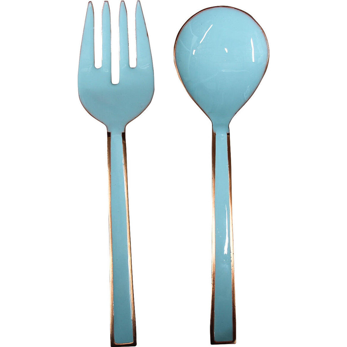 With a large spoon and a fork available, you can easily lift and toss salad for a refreshing and cool summer meal! These aqua/rose gold salad servers blend beauty and practicality for a stunning addition to the tabletop and give you a mix of traditional and unexpected style. The outer cool aqua glazes beautifully pair with the inner warm rose-gold brass for a sophisticated look making them perfect for any kitchen or home decor. These solid and weighty salad servers have been designed in a modern contemporary style and will make a gorgeous set with our aqua/rose gold teaspoon set (Code: HF544-2).