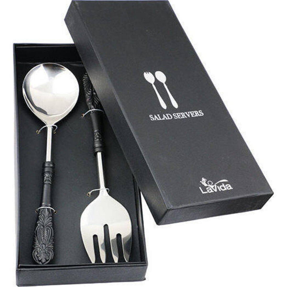 Dig in deep into your bowl of greens and serve without any hassle when it comes to shredded or rough chopped salads, as this set of fork and spoon will help serve the greenswithout any hassle at all. The design in terms of spoon grip as well and length of the stem allows for easy passage from the larger bowl to the plate. The fork and spoon are created with an eye of exquisite detail which makes them add a large amount of elegance to your table and classic sort of old world beauty that comes from using just the right varieties of accessories. Dimensionally balanced, rust, tarnish free, and scratch resistant, the steel body will retain its lovely shine for years of usage. It is reminiscent of traditions of salad serving spoons that were crafted from silver and given such a lovely finish - a style that has been kept in mind. Here is the best offer from Lavida to keep your table setting looking wonderfully elegant and very classic in its beauty.