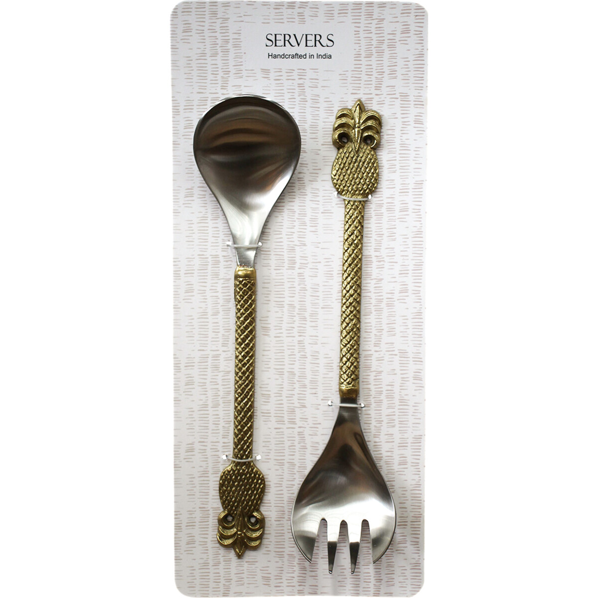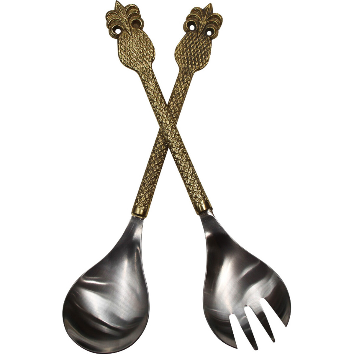 Each utensil features a pineapple-inspired handle with realistic textured engraved pineapple accent at the end having traditional leaves. It adds a whimsical touch to a dining table making these servers tactile and lovely to look at yet very functional. The set includes 1 spoon and 1 fork that can be used for a large serving bowl to toss, mix and serve your everyday basic salad. The right tools for a layered salad job; this set covers everything a hands-on host might require and offer long-lasting beauty without the 'handle with care' cautions and frequent polishing needed by silver products. For cleaning and maintenance, this set should be wiped with a soft damp cloth.