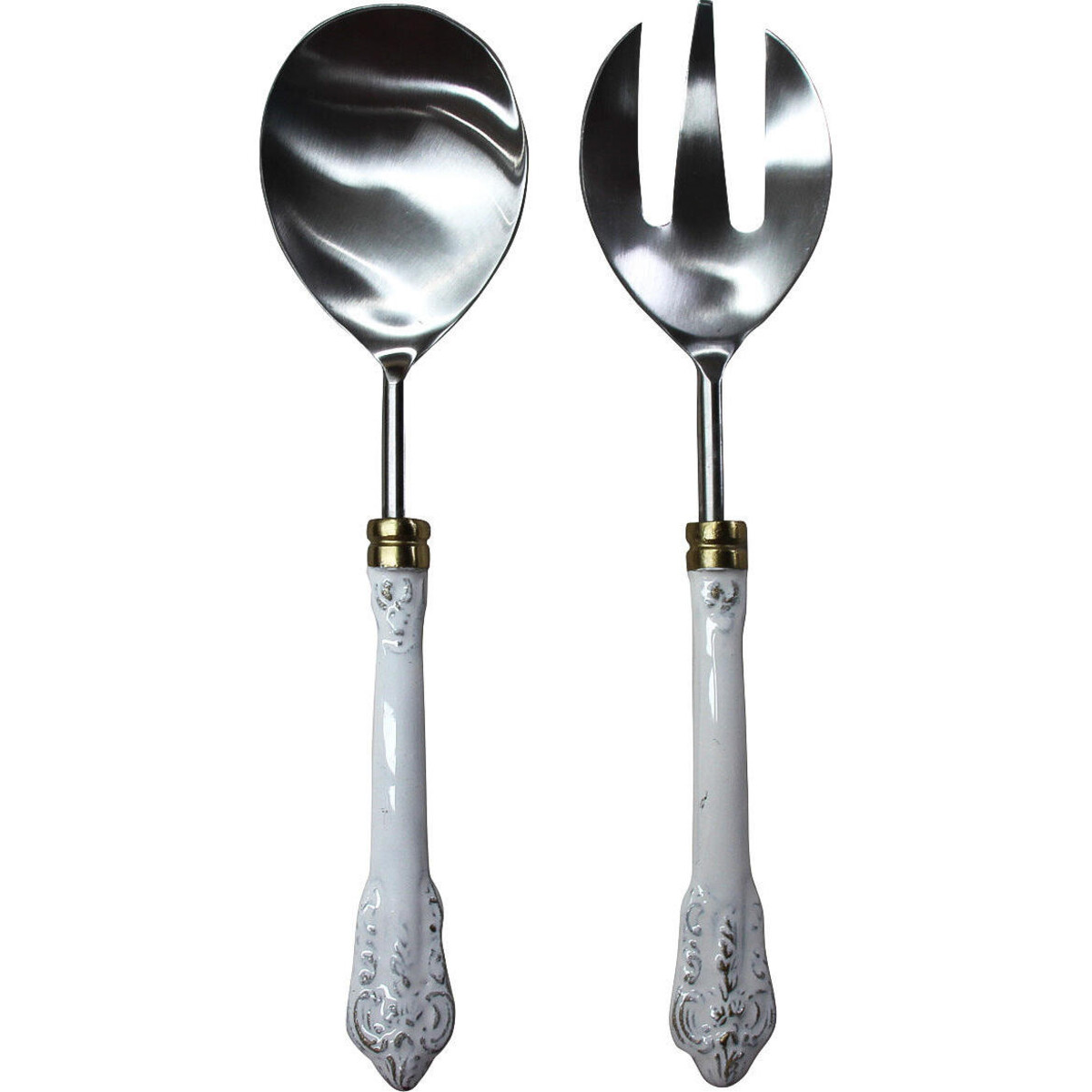 Made to serve the salad in style, our white handled salad servers are made of shiny stainless steel and aluminium so that they not only look fabulous but also function better and last longer than traditional wooden serve-ware. These pieces are of a nice size and look great when serving salad to the company. The vintage white handles have a beautiful and unique charm and will coordinate with most crockery, though these will match perfectly with the other items available in our Vintage range.