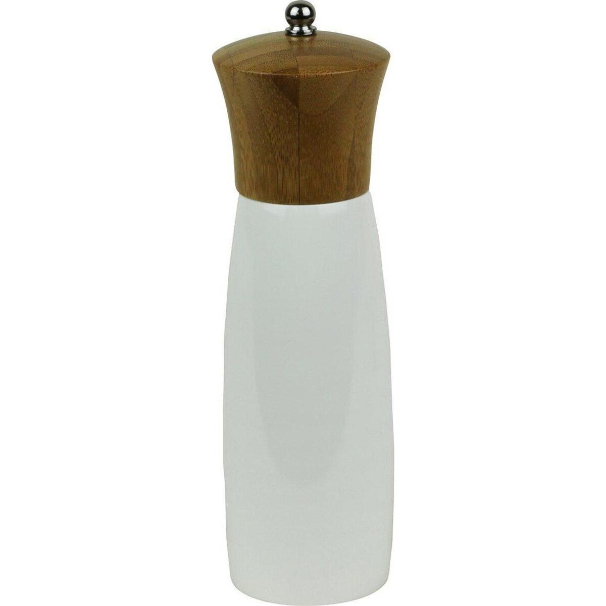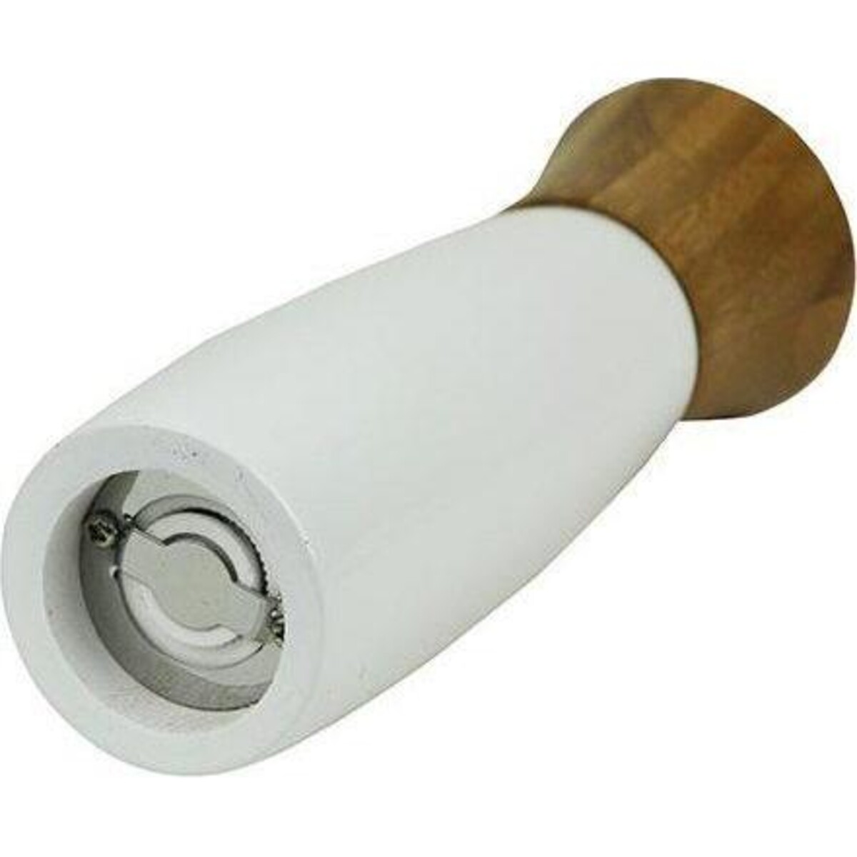 Create a storm of spiciness or the delicate notes of a flavor when you add pepper n the right manner to your food and what better way to get the powder at the right time. Here is a pepper mill that looks truly elegant in white making your food smell and taste better and ready to get into action delivering fine pepper powder to a coarse one in just a little twist. Designed with the intention of hardiness, it's bound to give you years of service , making all of your coking smell divine with the right notes of spiciness that pepper lends to food easy to refill and operate it has just the right ergonomics for an easy grip . The height of the mill is about 19 cm and its diameter is about 5 cm. The top is in natural woody brown while the rest of its smooth white body has been given a white colour varnish that is going to remain tarnish proof and fade resistant. Gleaming white and utterly desirable for its looks and functionality, making each meal taste and smell better. Refilling and cleaning are both easily done.