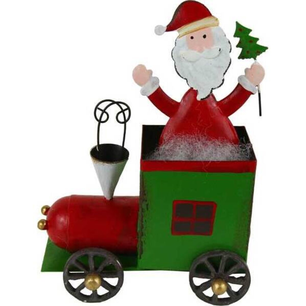 Truly a journey that Santa seems to be enjoying - this tiny little toy train Santa has completely fashioned from metal. Expertly made the little tiny detailing of the tiny tree in his hand , the four wheels of the train and the little box in which he sits while waving out to all - is what will immediately steal anyone’ heart. Placed anywhere in the house it will instantly draw attention with its tiny size and its entire design. Some amount of expert craftsmanship has gone into creating this shabby chic patterned green and red and white train that drives in the spirit of Christmas like nothing else can.