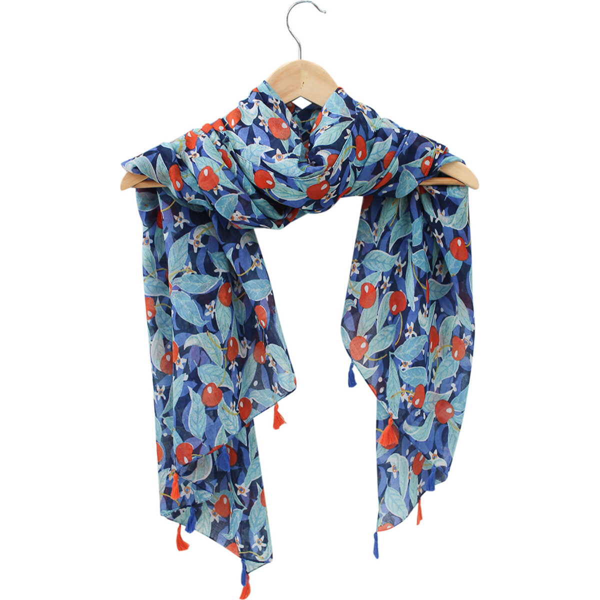 The Scarf Cherry Pie is an ornamentally valuable scarf that is made in alluring colours which would easily complement most dress styles and dress sense. Recently updated into our classic collection of Wholesale Scarves and Clothing, this scarf is fast becoming a favourite which is part of why you really should place your order today because we have limited stock available. It would be sad to come back and find that this blue coloured cherry pie scarf is all sold out and that another product has taken its place.