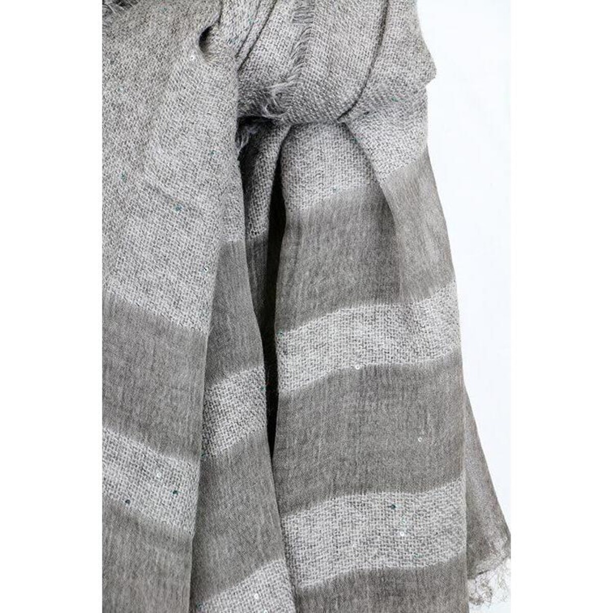 Add more scarves from Lavida's new range of offering for all ladies who wish to make their appearance more versatile and sophisticated and that could simply be achieved with an inclusion of just a scarf. This non bulky, fine quality scarf has been created with the right blend of wool and acrylic giving its lightweight comfort as well as ability to keep you warm. The tiny sparkles added to its borders sends the look to another level of beauty evident as it is each time to move, the light catches the tiny little star like sparkles and makes it look fabulous. Whether knotted to a formal look or simply draped around the neck or shoulders, its fabulous rich gray colour teamed as it is with muted white and darker gray, looks uber sophisticated. The colours itself is the kind that will blend in with all colours yet will not lose its elegance and sheen getting overwhelmed by brighter colours in the least. The fall and texture as well as the lightweight feel of this scarf will soon make it your special look staple for all those occasions when elegant looks matter.
