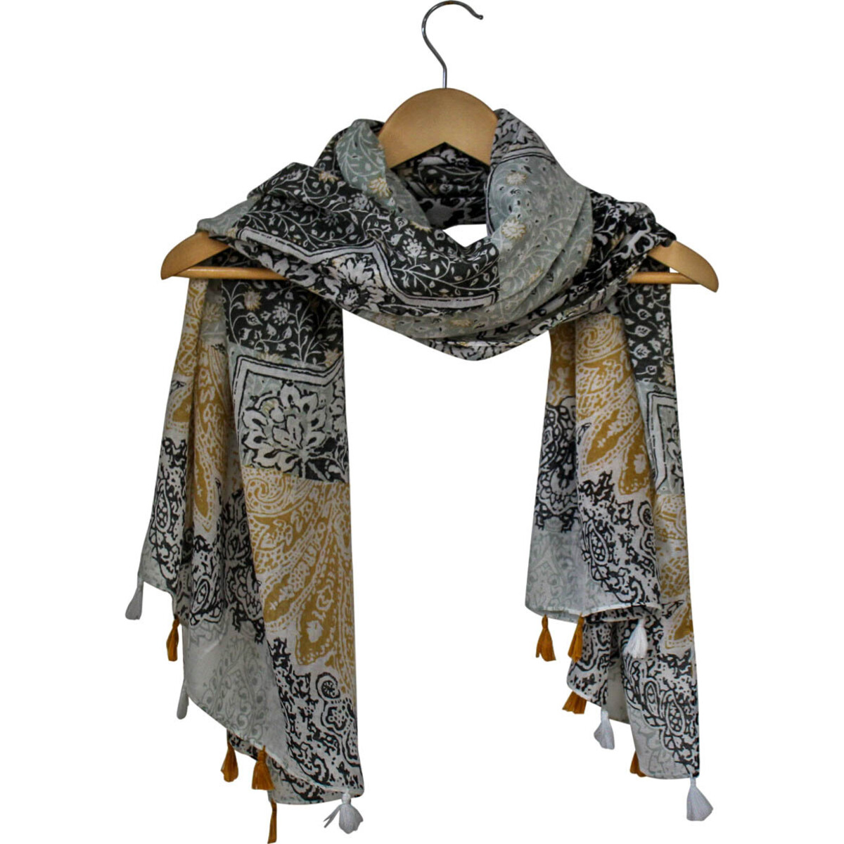 Scarves are wonderful clothing accessories that can be used by women and even men. It is especially a popular clothing accessory due to the numerous ways in which it can be used. This includes draping it around the neck, draping it over the head, draping it around the mouth and nose such as by those in the desert or at the beach, tying it over a bikini at the beach, using it as a tie and several other ways. It has ornamented fringes at both ends of the scarf's length.