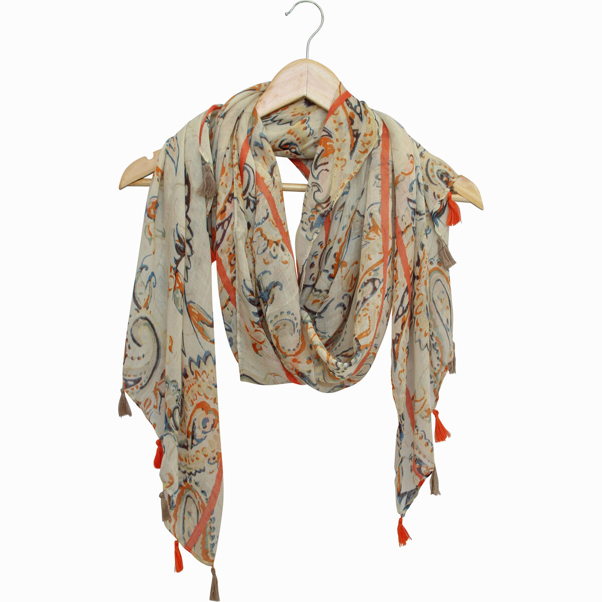 The fabric feels lightweight and not bulky-the white backdrop a perfect summer mirage on which the print looks decidedly fresh and clear. The tassels add to the finish and the sarong is sized in such a manner that it would work as great as a scarf as it would like an overlay which could be added to any short dress. You could use it like a shawl on cooler summer evening when the breeze surprises you with its coolness and it could be used like a skirt when on an outing to the beach. A versatile accessory in your wardrobe whose many magical stylish avatars can eb seen on the fashion ramps and around you. Usher in the beachy kind of vibes with this gorgeous lightweight sarong and make your seaside holiday feel super comfortable when out in the hot sun.