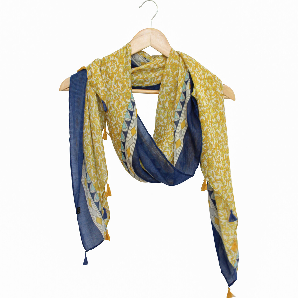 For those days at the beach-or for that overlay that can make an ordinary tube dress look like a designer outfit-there are so many ways to style sarongs and the number of styles that you can create with them only echoes the number of patterns and colours they can bring into your wardrobe. Here is one that combines a gorgeous golden yellow colour with royal blue to make an eclectic statement I terms of design. The fabric is cool and soft on the skin and it drapes well. You could wrap it around your neck for cooler evenings or wear it like an overlay along with a belt to hold it in place. there are little tassels that coordinate with the colours on the sarong which adds to its finish and over all beauty. Whether worn as a skirt, a shawl, a scarf or simply over the shoulder to add more colour to a plain dress, it makes an impression with its soft flowing style and elegant looks.