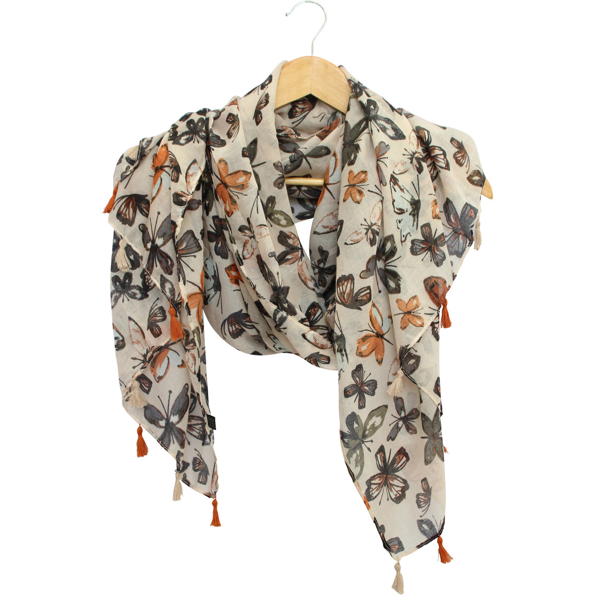 The print is as airy and summery as the soft breezy feel of the fabric on your skin despite its length at 180 cm and its width at 100 cm, the fabric does not feel too bulky and heavy whichever way it is worn. You could style it around your neck, your shoulders or wrap it around your waist to look like a skirt. The tassel complements the colour palette adding the little boho feel. The base colour in off white adds to the definition of the print which is its highlight. Summer fresh and easy to combine with all kinds of informal outfits-this scarf will go well with your everyday jeans as well as with your summer dress. Feels soft and lush on the skin and its spring fresh print will combine with pastels as well as more bold colours easily.