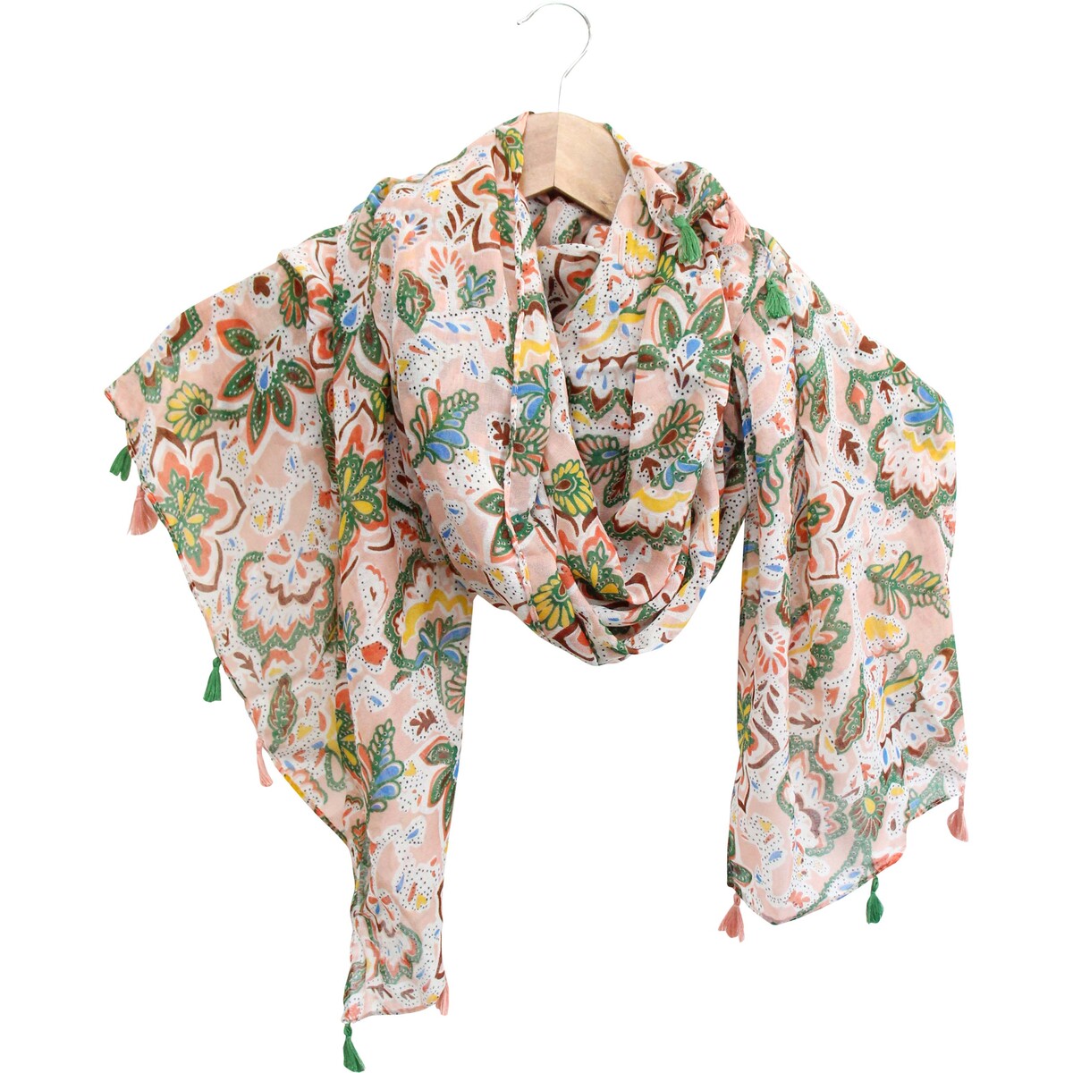 The Tyla's enchanting design boasts an intricate blend of floral motifs, flourishing in a symphony of colour that bears no singular hue yet complements a multitude of decor palettes - from the modern minimalist office to the bohemian-inspired home. This multipurpose gem transcends mere fashion accessory classification; it elegantly transforms into an artful throw, a chic table runner, or a captivating wall tapestry.
