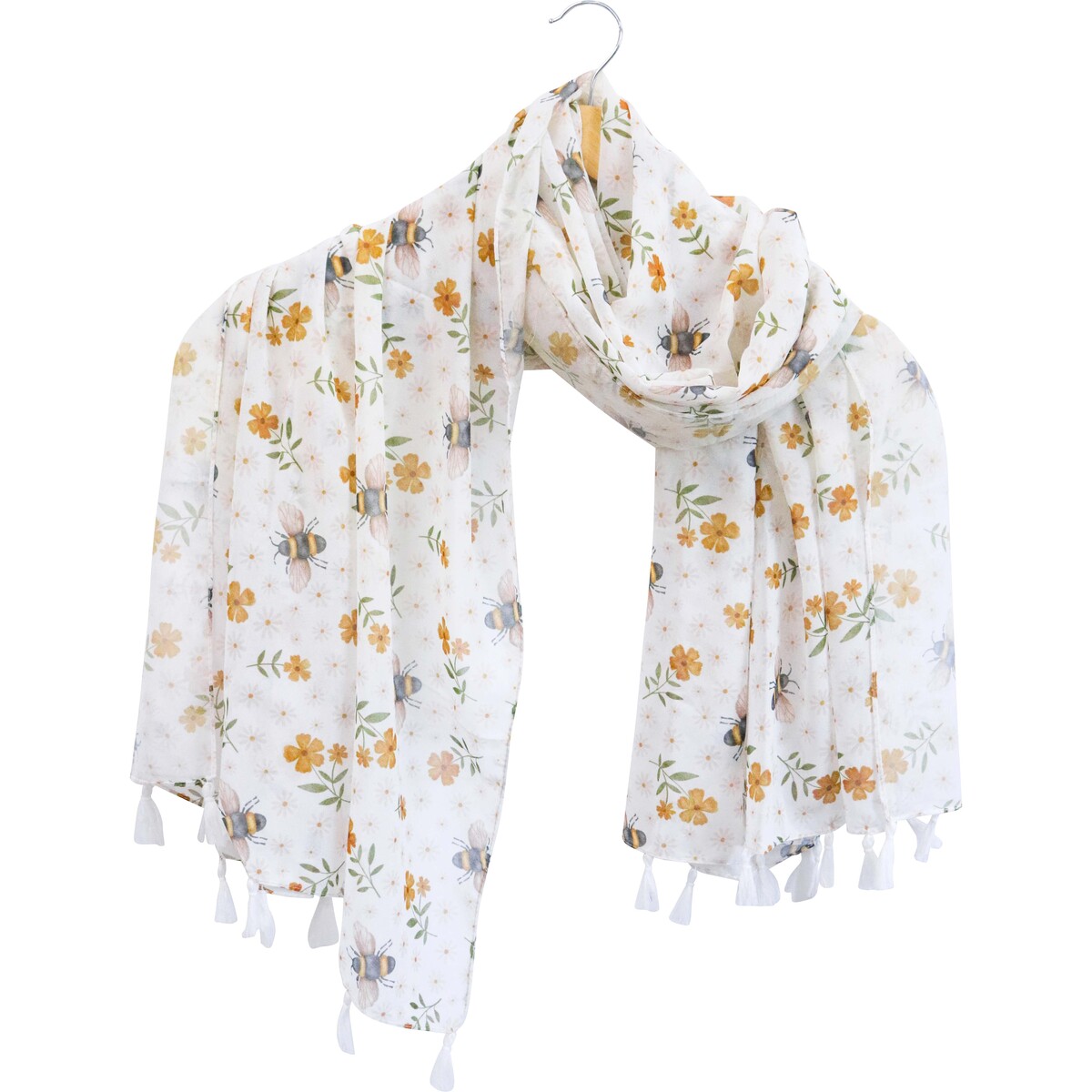 We’ve always been partial to designs that have a bit of personality, and this Scarf/Sarong Bees is exactly the sort of thing we want in our shops - and probably our own wardrobes if we’re being honest. The bees - what a classic, instantly recognisable motif - paired with those delicate yellow blossoms and the soft white base colour. It gives a subtle pop of spring wherever it’s worn. We know our buyers have seen a million floral scarves before, but there’s something about the way this one ties together with tassel fringe and gentle watercolour motifs that makes it pop.