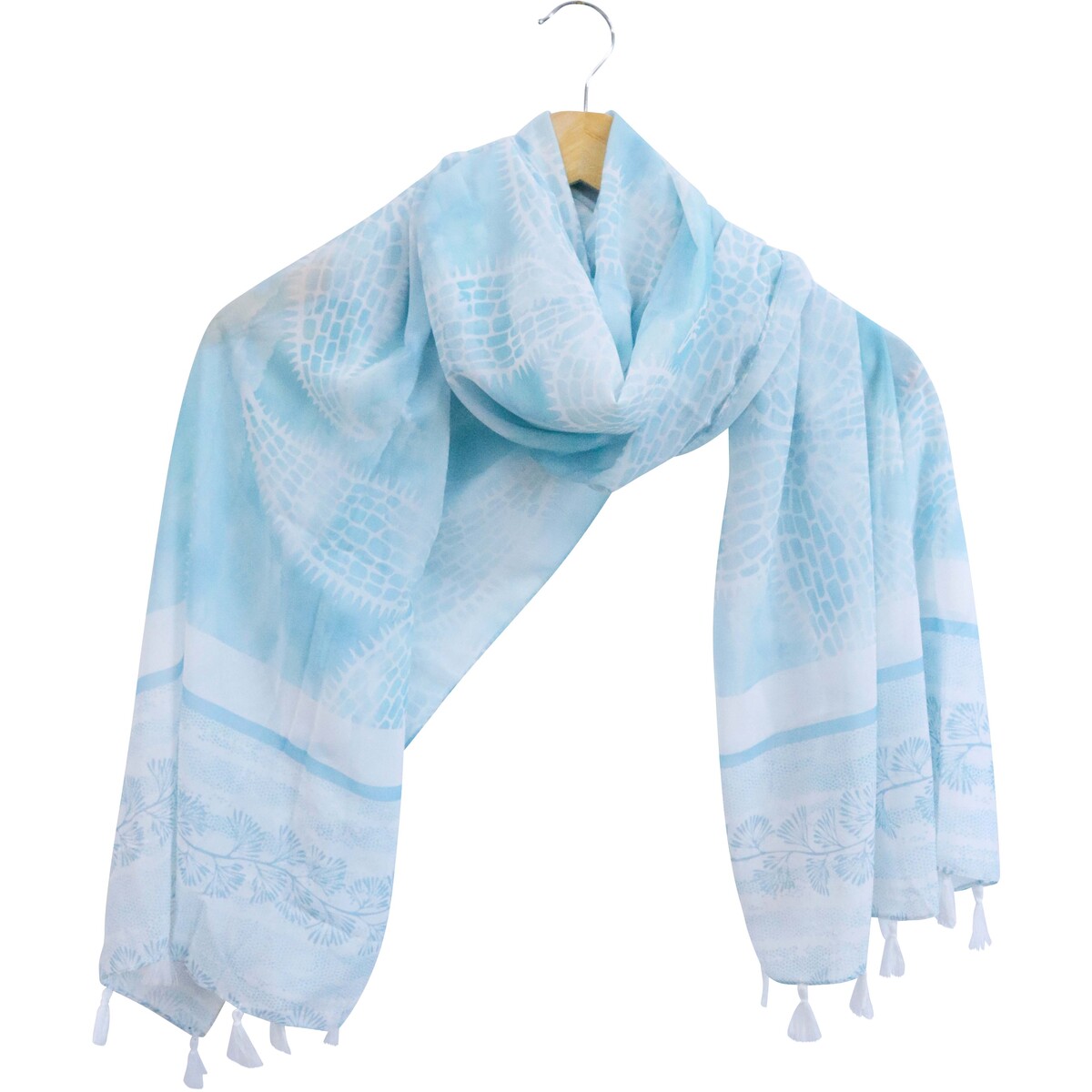 At 90x180cm, there’s ample length here for customers looking to wrap their sarongs around after a swim, or even pair it with workwear for some office-to-evening versatility. It helps that this piece suits so many different aesthetics - from casual weekend outings through to feminine party looks or people wanting a neutral but interesting touch to their wardrobe. A subtle blue and white pattern really does go with everything, doesn’t it? Some of our customers have mentioned they love offering scarves like this in homewares stores because it makes gifting easy - if a candle isn’t someone’s style, a scarf might be!