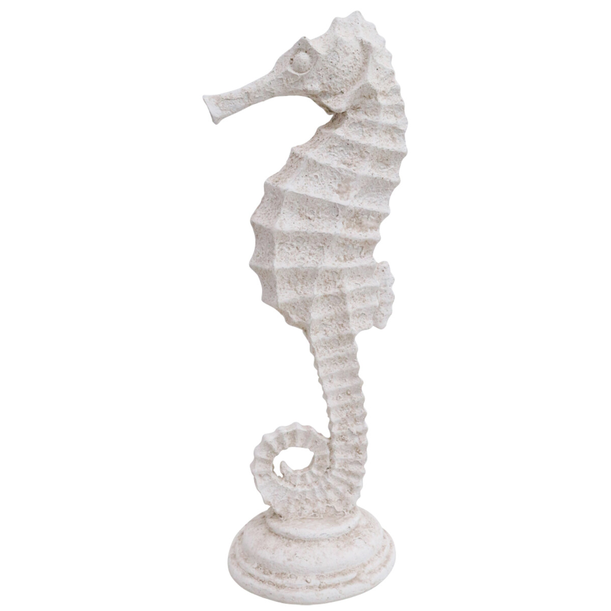 There’s something really, properly special about the Seahorse Washed that always seems to catch people off guard. It’s a classic coastal design, in a washed resin finish with those perfectly imperfect little hand-crafted details. And by imperfect, we mean truly beautiful - every one is slightly different and we tell everyone to expect some quirks. It stands at 31cm high and the light tone sits really nicely with sandy or seafoam colour palettes. That’s why our retailers usually display it with coastal decor or Hamptons-style homewares, but you can break it up a bit and see how it holds its own against dark wood or rattan too. We’ve seen it work in all kinds of spaces, from entryways that need a bit of fun to studies that could use an ocean theme for their relaxing vibe. The round base keeps things neat and upright if you pop it on a shelf, windowsill or console table. We recommend unpacking these from the carton before displaying in store, so people can feel those rustic textures and appreciate the hand-finished details that make each piece unique.