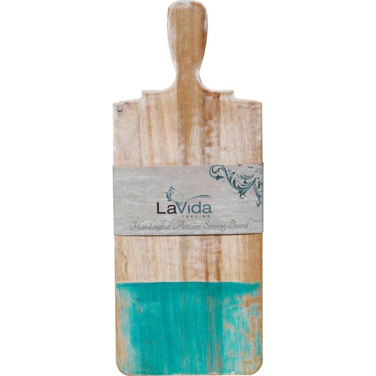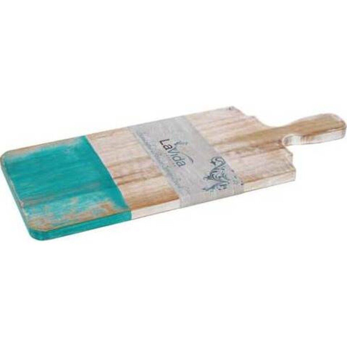 Our Small Blue Serving Board is made from all natural solid wood that resists bacteria and mold, and is easy to clean and store. Restaurants can simply stack them or stand them upright to save space.