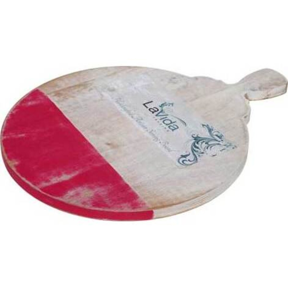 This round serving board has been finished with a whitewash effect and given an artistic band of gorgeous Magenta, a great modern colour which will add a dimension of chic to any kitchen.
