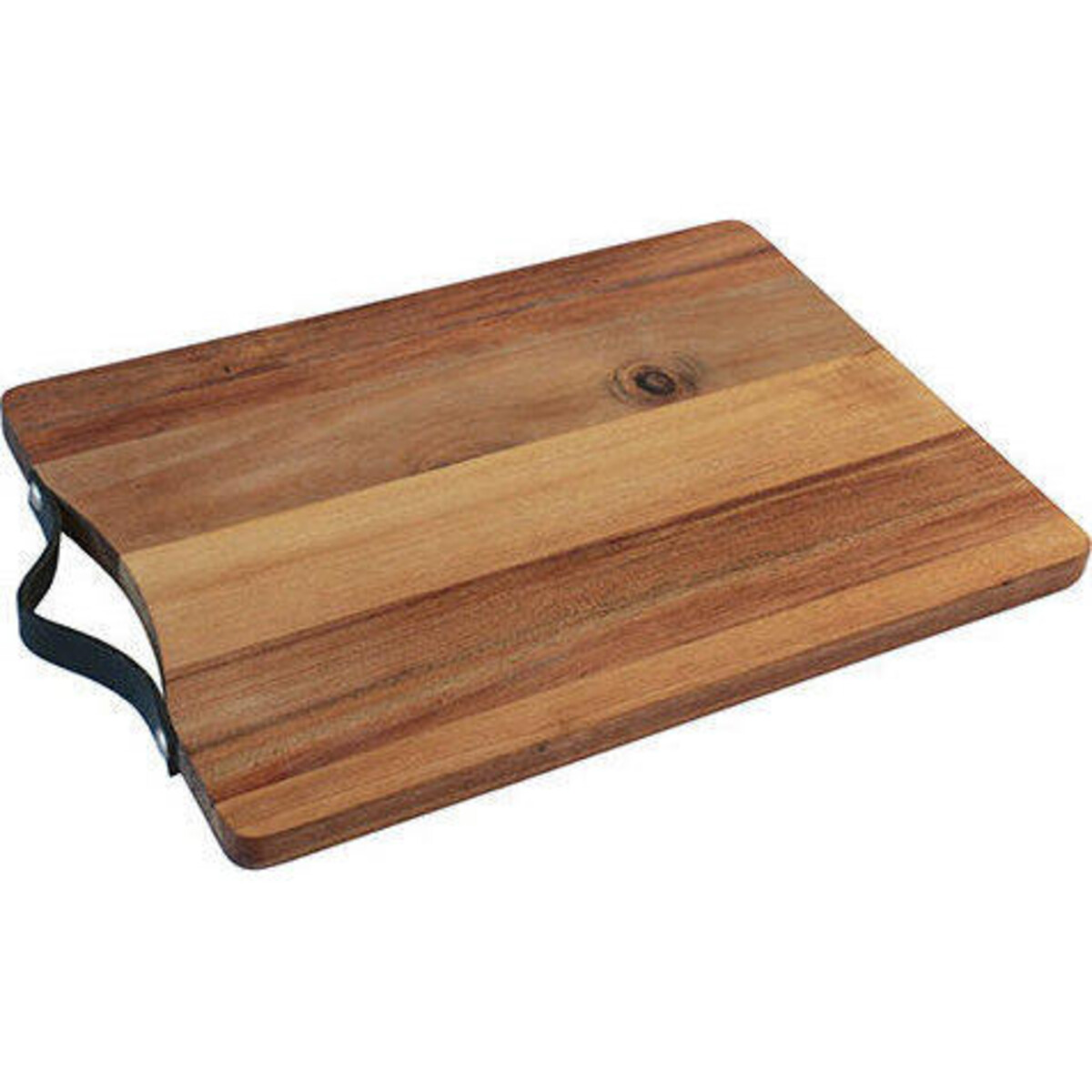 You have always prided yourself to be not just a coo par excellence but have set your table up with as much finesse. Here is an accessory that will play host to all your accomplishments in the most functionally perfect way, a cutting board made of acacia wood, given a convenient handle and sized in a manner that it will be as great for serving cheeses and meats as it would be for chopping fruits and vegetables. Make it part of your kitchen or your dining table and let the rest of your talent flow. The chopping board is all of 36 cm in length and 26 cm in width with a thickness of 1.8 cm. Light weight yet sturdy and steady under the knife it looks natural-fine grained and tough. The board may simply be washed clean or wiped after use. The simple and easy means to make your everyday cooking and serving free of worry is by adding accessories that perform as great as they look and this certainly is one such piece.