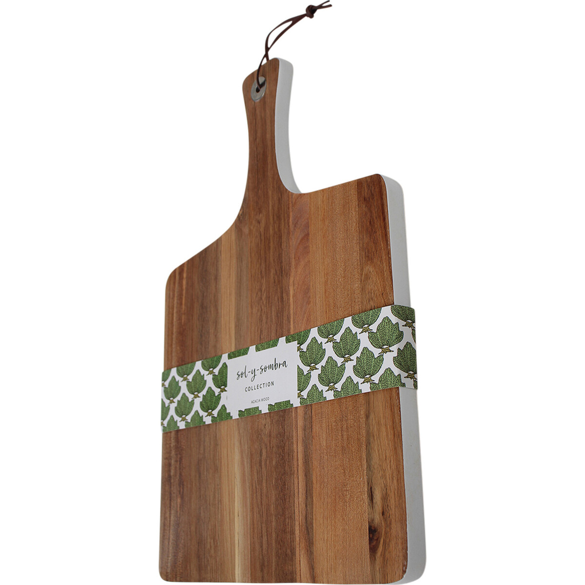 The Serving Board Paddle M/White Edge is a lovely as well as a practically functional wooden board that was made by some of the best craftsmen in order to satisfy all of your customer's kitchen and serving ware needs. As a practically functional board, it is made in a fairly large sized proportion so as to be able to accommodate most foods that need to be sliced, cut or chopped such as veggies, meat, etc. And it is easy to store away after use as it can be hanged on the wall or cabinet using the attached short rope.