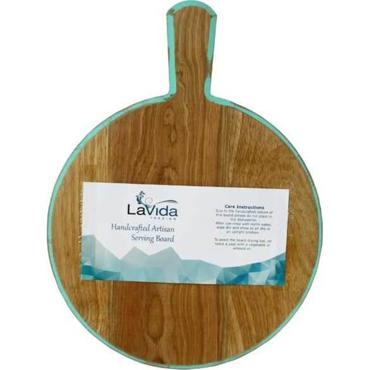 There is something about the beauty of natural wood that makes this handcrafted serving board make even very ordinary edibles like cheese and bread look delectable and mouth - watering. The grainy look of the wood does wonders to add the natural warmth to the feel of the food served - almost like oven fresh goodness right at the table. Stunning in its fresh organic look this serving board comes with all the trappings of a personalized serving board that has been made with comfort and usability as its prime design element. It could make a wonderful gift for someone whose culinary talent is known or one who is constantly looking to find a newer and more elegantly different way of serving. The circular shape has a diameter of about 31 cm and the handle is about 10 cm long and broad enough for a good grip.