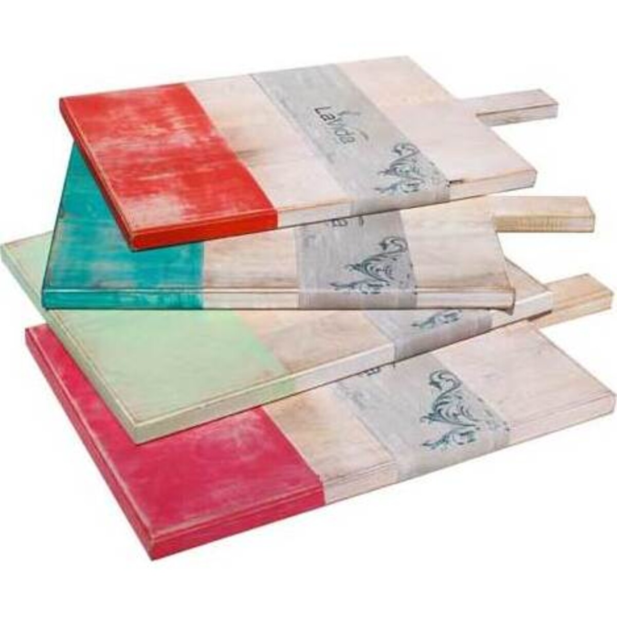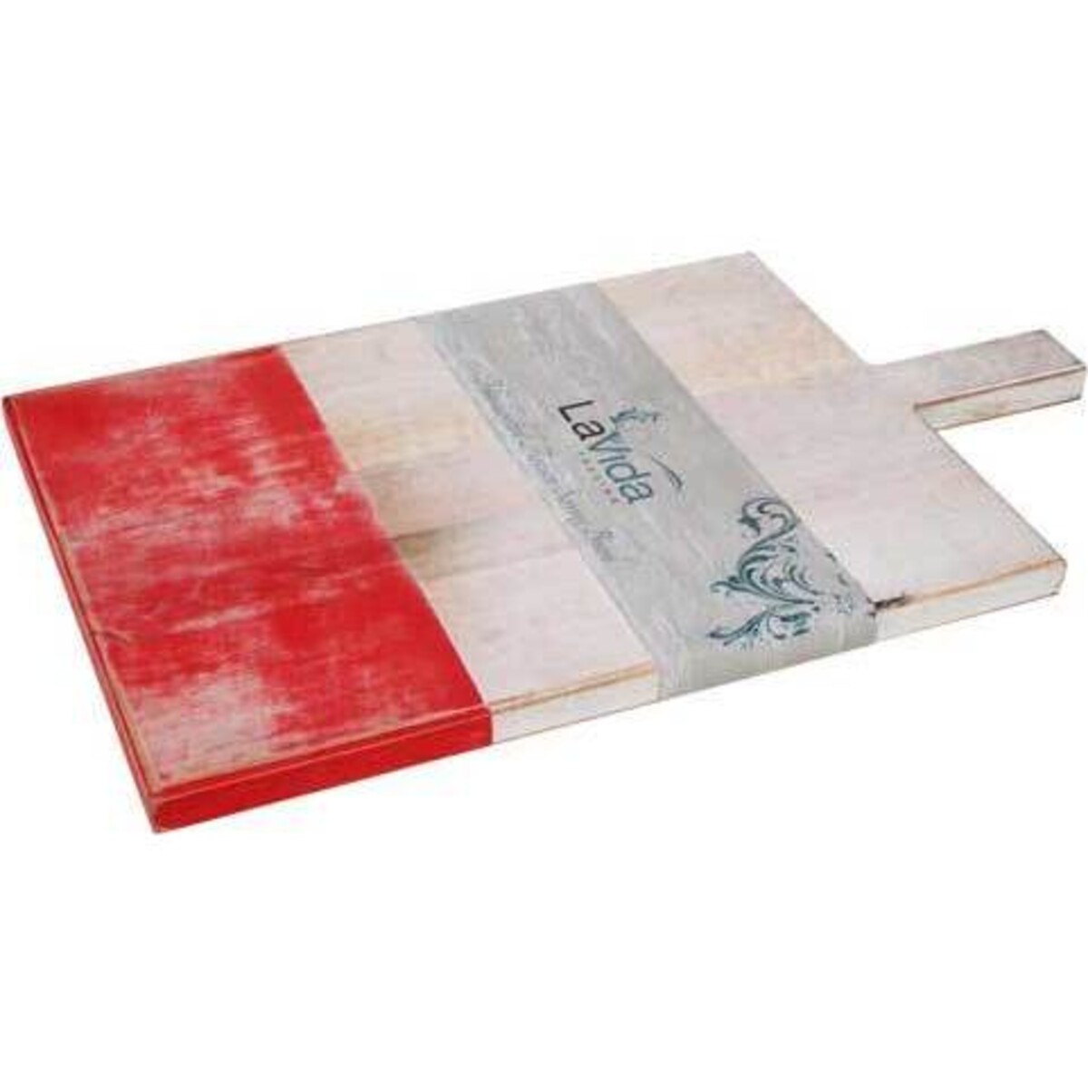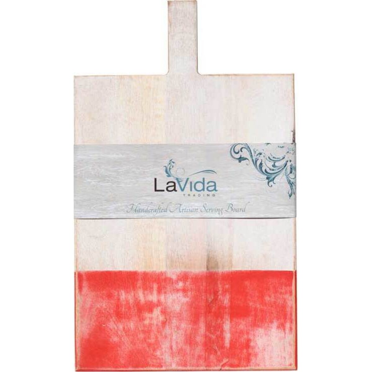 This large serving board has been finished with a whitewash effect and given an artistic band of gorgeous Ruby, a great modern colour which will add a dimension of chic to any kitchen.