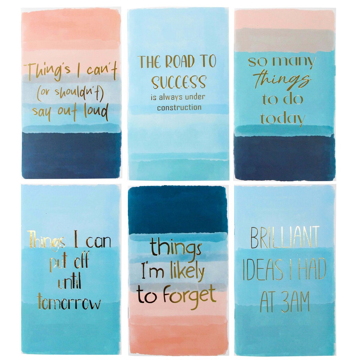 Right - sometimes it feels like our most brilliant ideas only come to us at 3am. Or when we’re way too busy to remember them later. It happens! That’s why our Set/6 Notebooks Sayings are incredibly popular for customers who need a little giggle with their organisation. These quirky, colour-blocked books have sayings that suit a variety of personalities and moods. And with six different phrases in the one set, there’s always another option if you’ve written the others full. For gifts, workplaces, or even just to help people stay on top of their schedule, these notebooks are memorable, fun and practical all at once. Each notebook measures 10.5x18cm and features 32 lined pages (80gsm) - so they’re thick enough for a few big ideas but thin enough to throw in a bag on the go. For stationery shops, homewares stores or anyone looking for a unique gift idea - our Set/6 Notebooks Sayings are a great addition to any inventory.