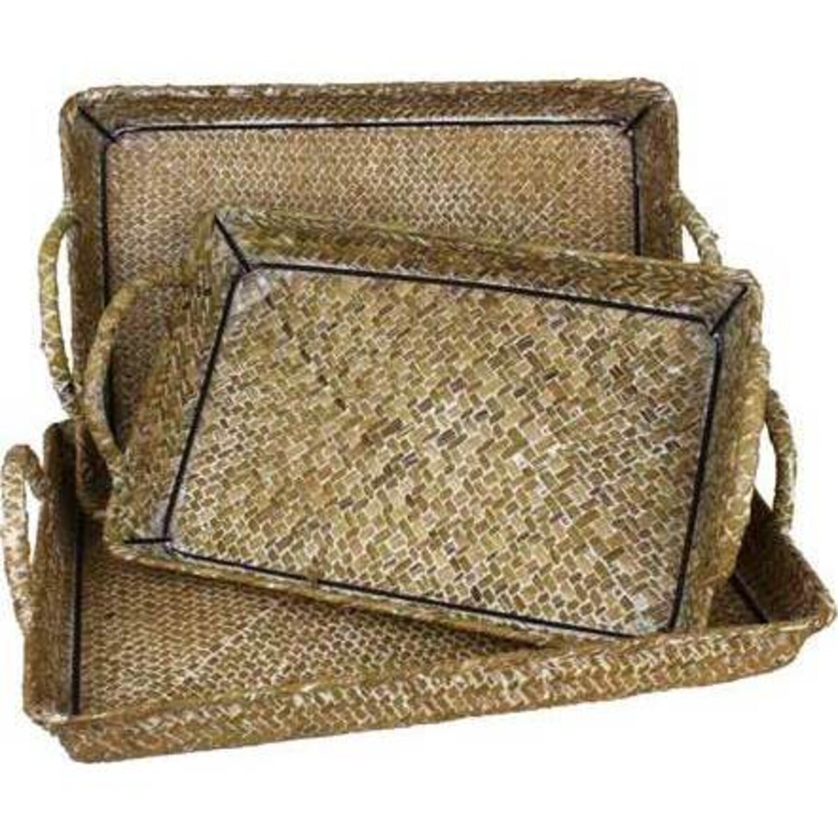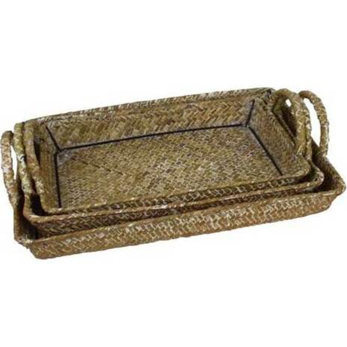 Shallow Woven Trays Whitewash S/3