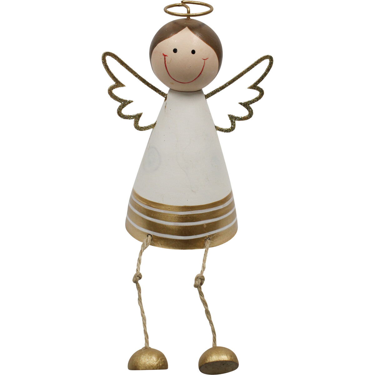 Featuring a minimalist sturdy frame with a tint of gold and beautifully shaped gold plated wings. Shelf Angel White Lrg pays homage to the sculptural rendition of the Heavenly bodies. Over the years, there are tales about angels being divine guardians for direction and safety. Angel's presence symbolizes purity, intelligence, and vitality. No doubt, this piece is an incredible upgrade for window display, console table, shelf and mantel. The best part? This piece is handy as a condolence gift to send to grieving families. It is also thoughtful on gravestones as a memento of loved ones who had departed.
