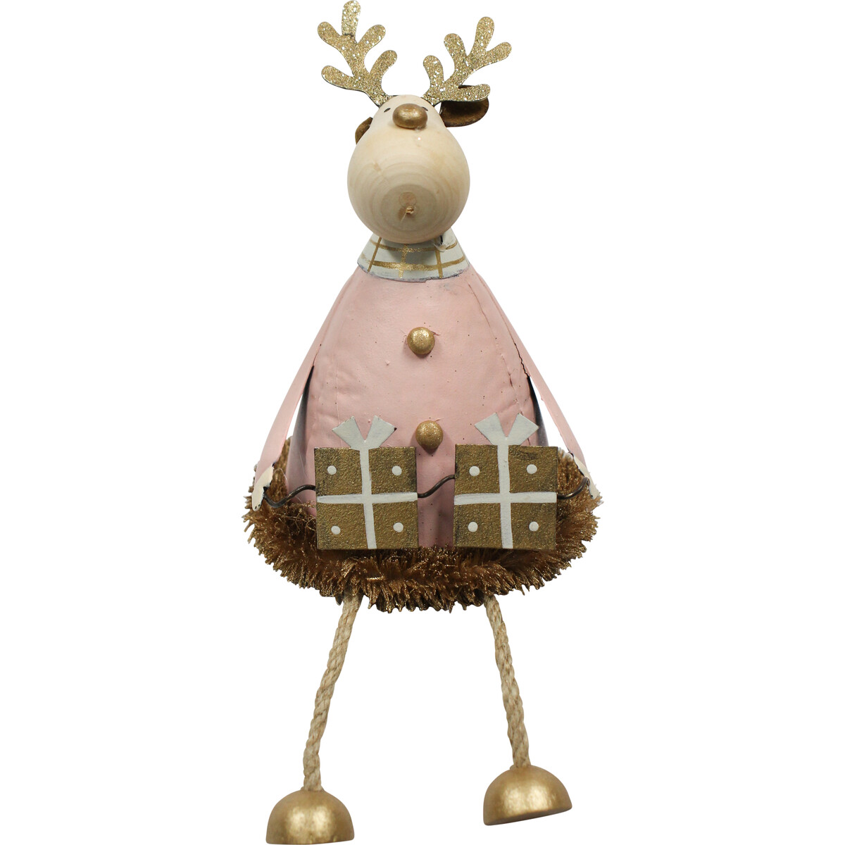 Did you know that Santa Claus is in the habit of travelling round the world through the help of nine reindeers that often pull his flying sled? Well, this Shelf Reindeer Presents Pink happens to be a figuring representing one of these magical reindeers. It is crafted through the use of premium quality metal material with the combination of all natural wooden material. It is predominantly hued in pastel shade of pink but also in gold, brown, and white palette. It is 23 centimetres long and 7 centimetres tall and wide.